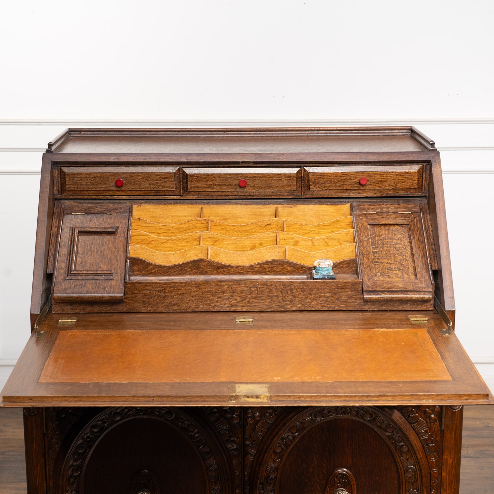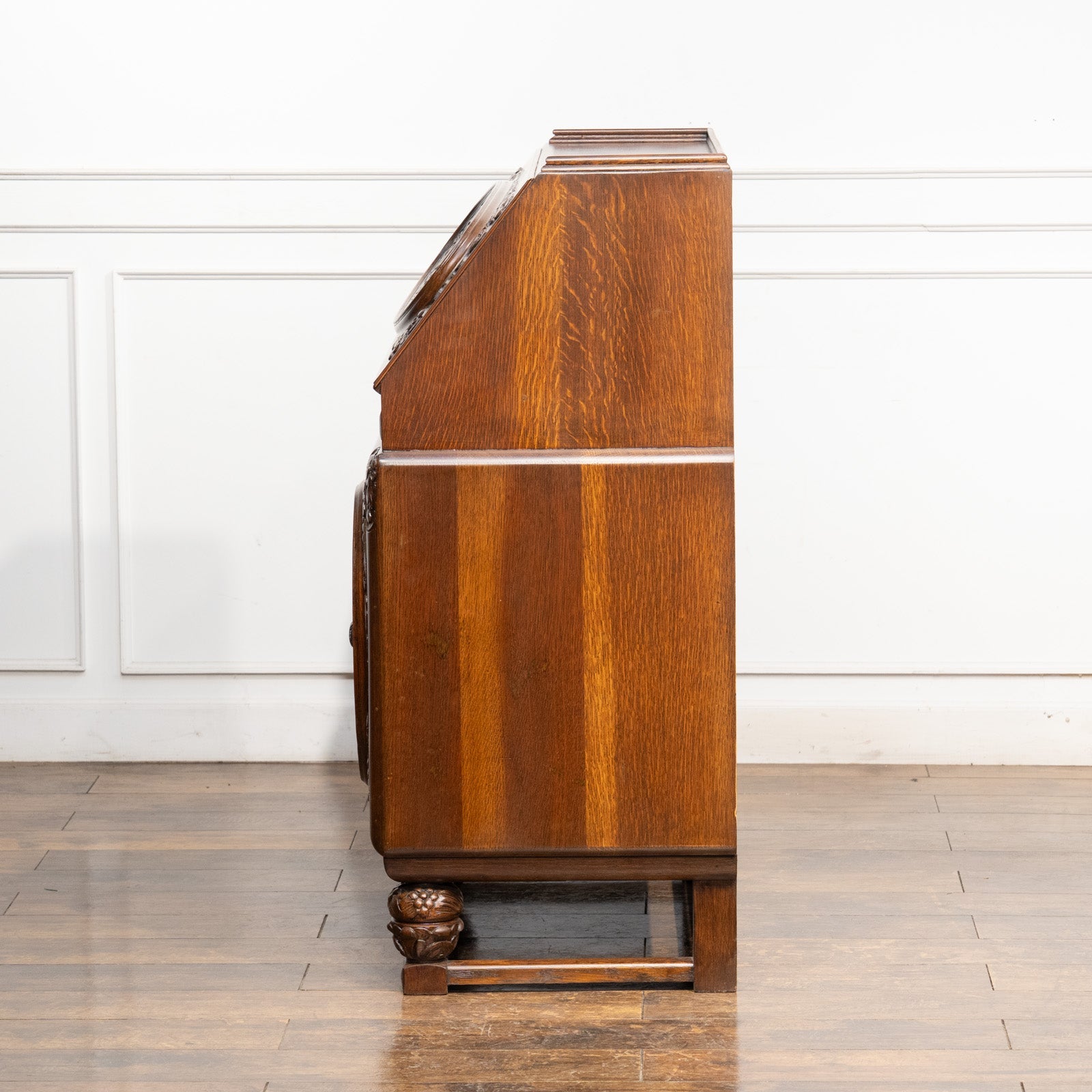 こちらはイギリスから買付けた、細部まで立体的な彫刻が施されたライティングビューローです。