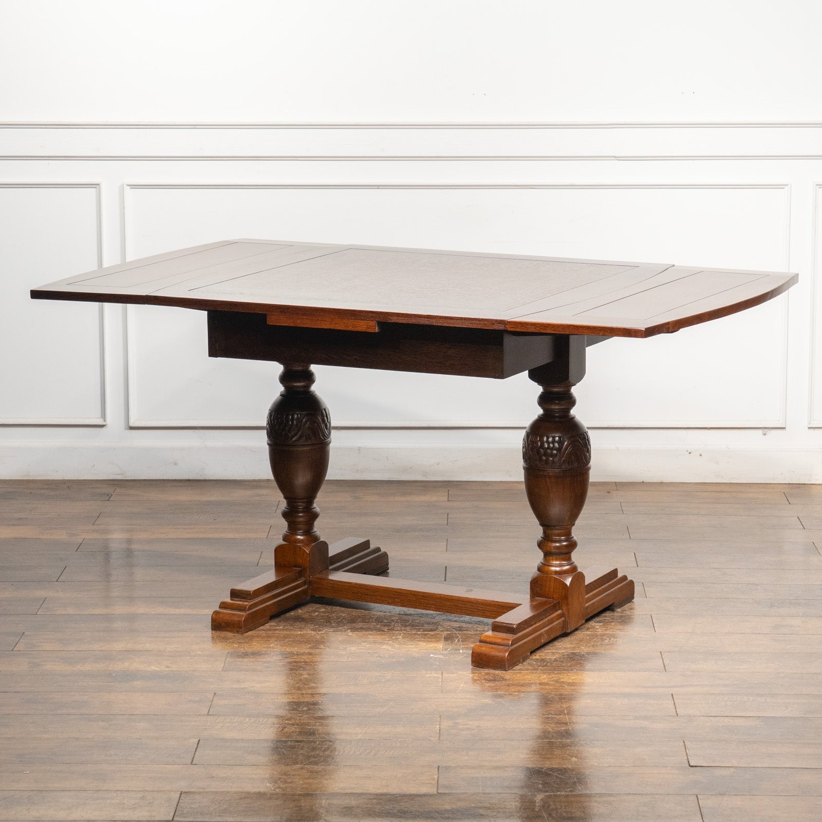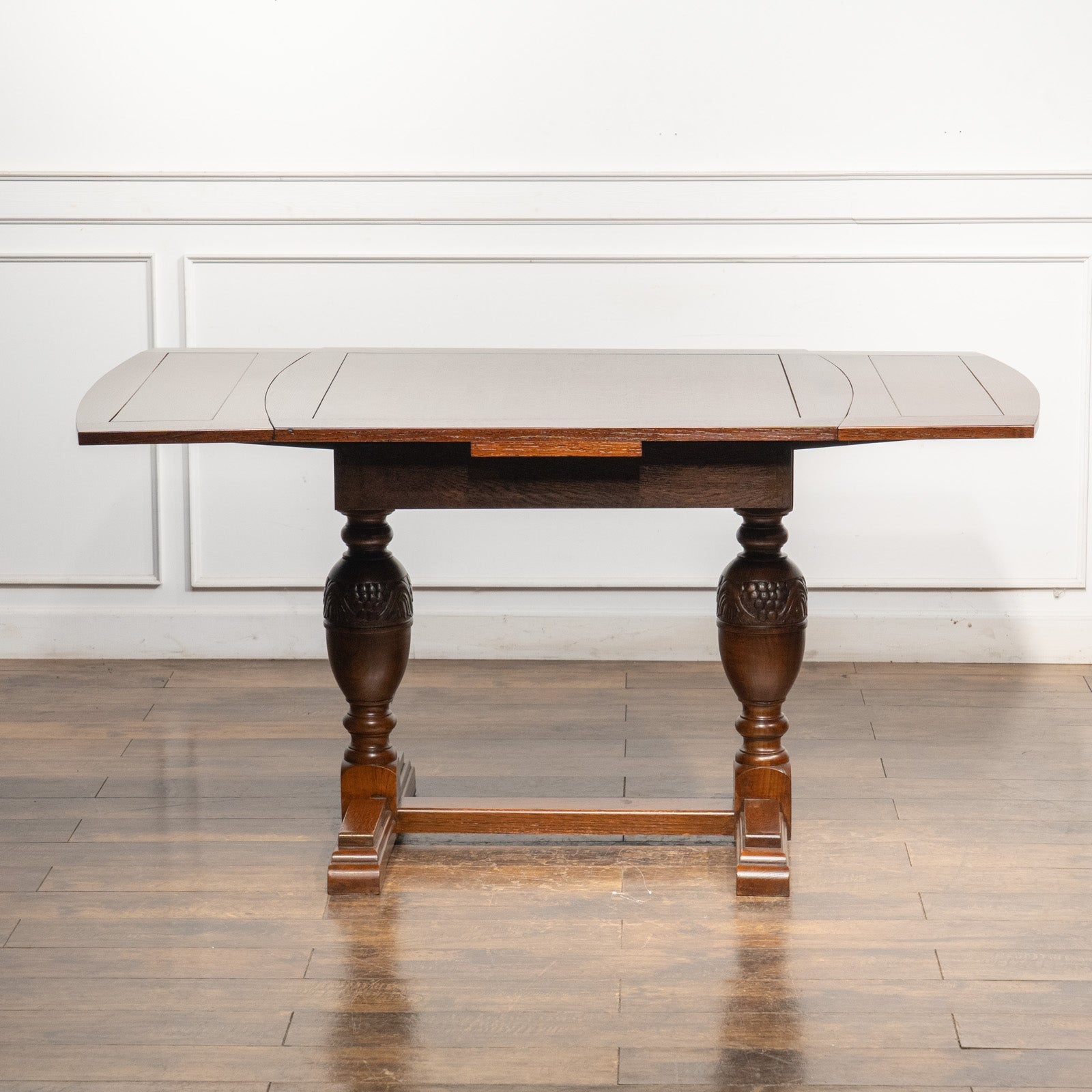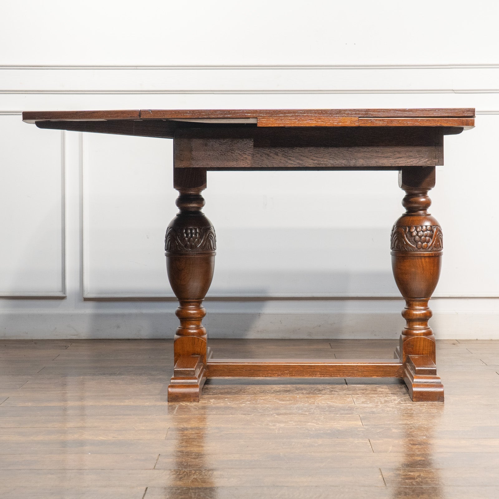 こちらはイギリスから買付けた、ブドウモチーフが彫刻されたバルボスレッグが印象的なドローリーフテーブルです。