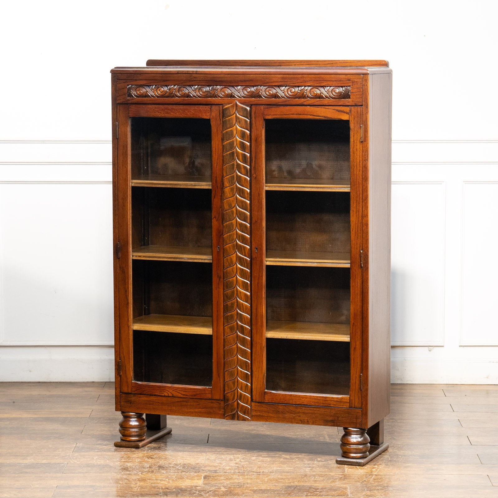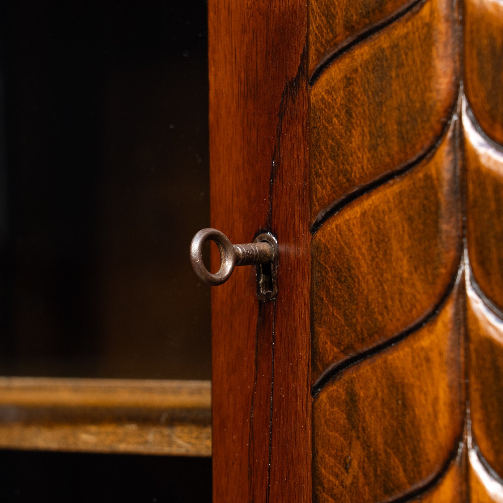 伝統的なギロッシュなどの装飾が目を惹く オーク ブックケース /25G