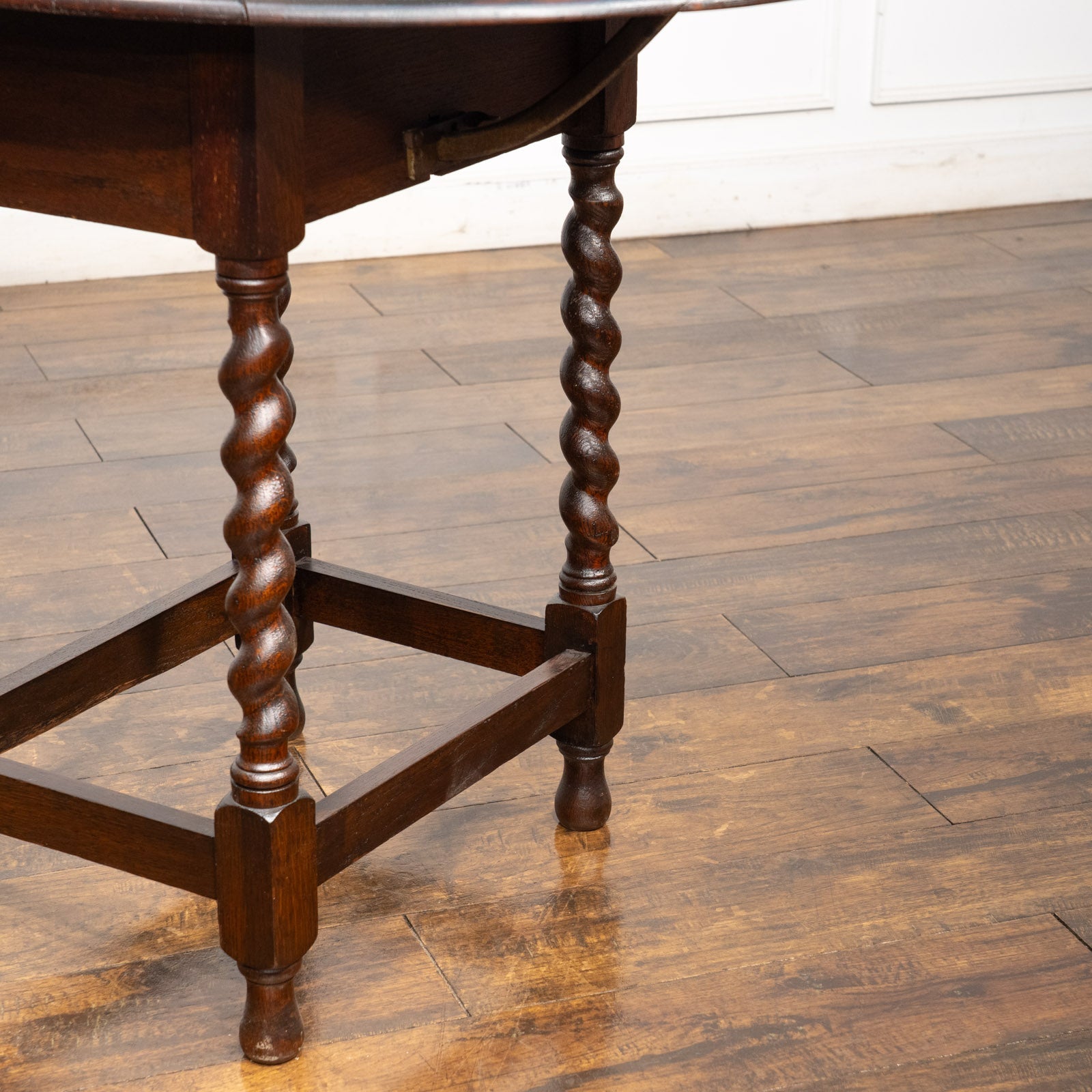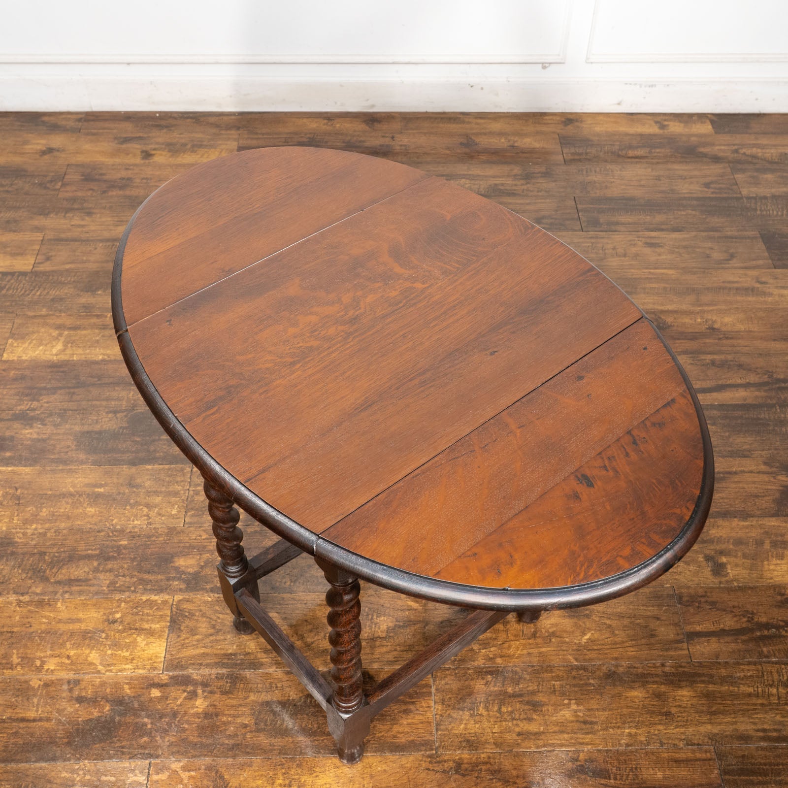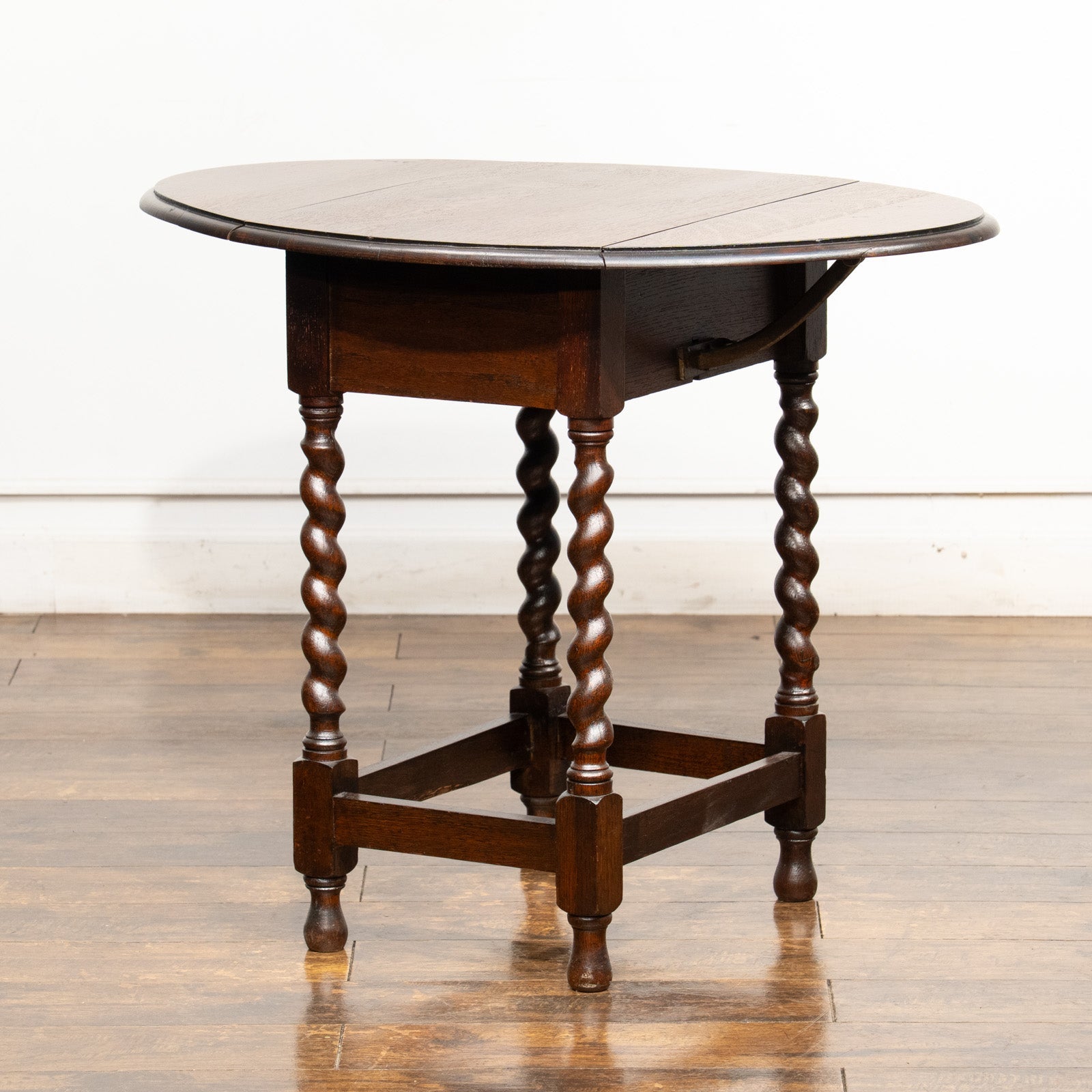 こちらはイギリスから買付けた、良くあるゲートレッグではなく珍しいドロップリーフタイプの折りたたみテーブルです。