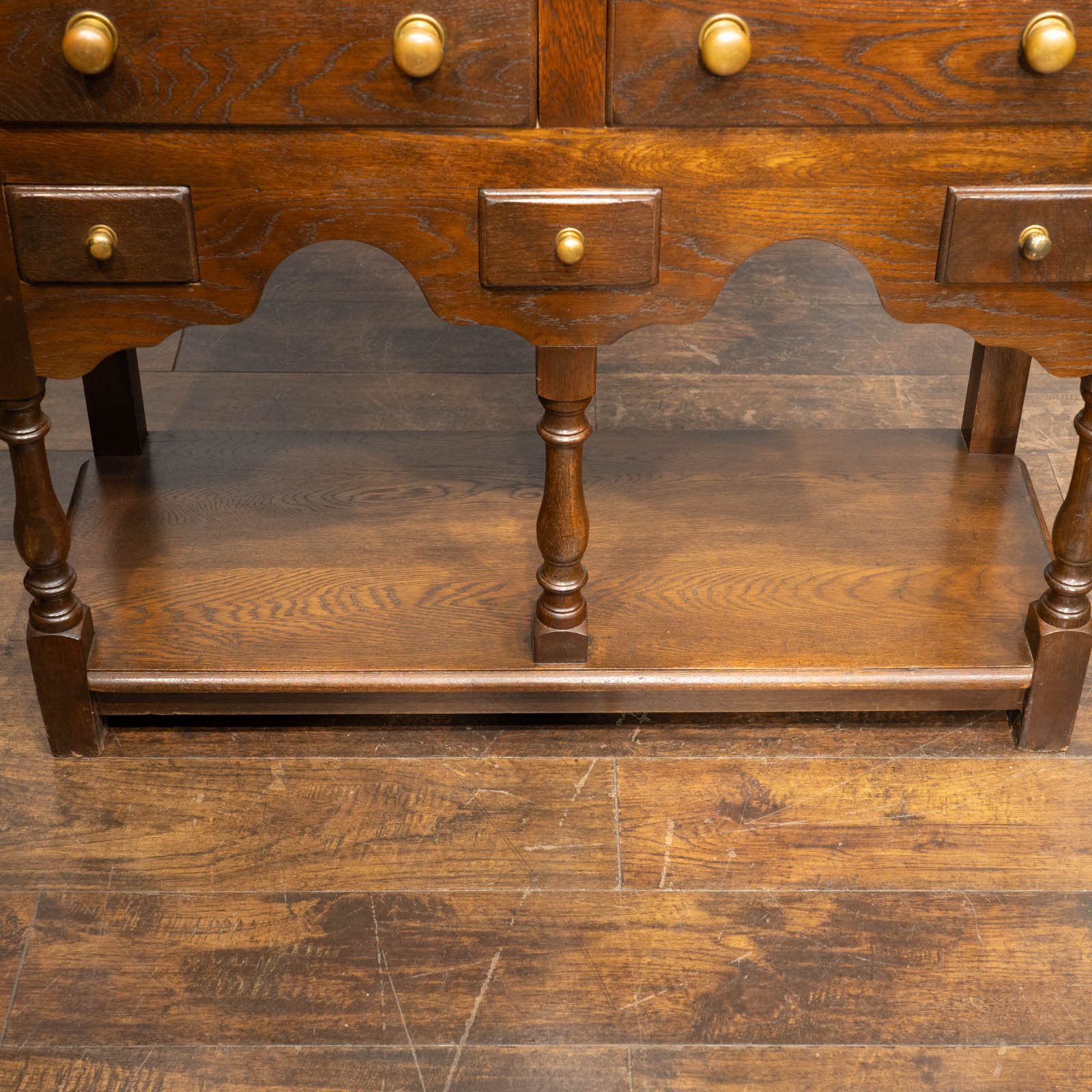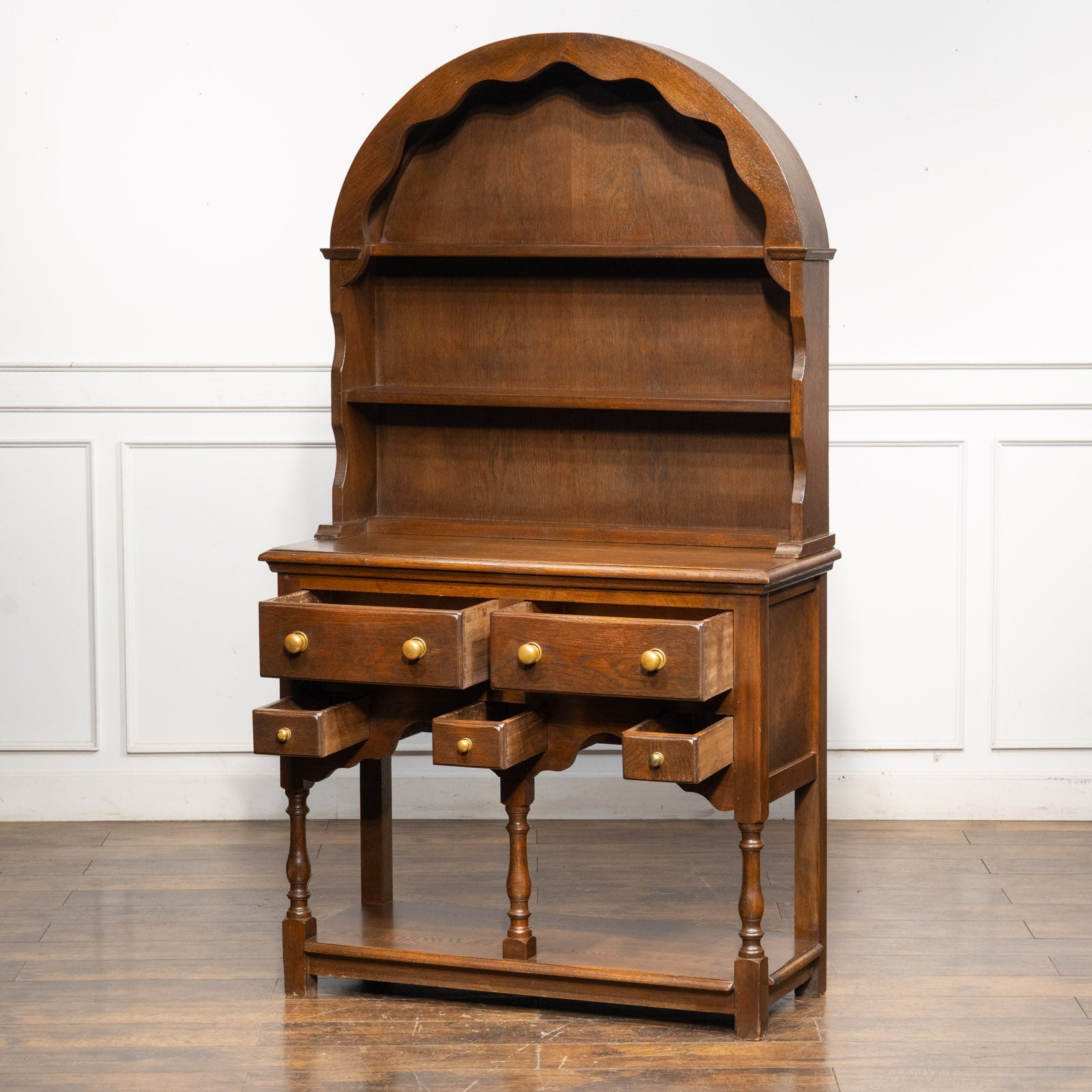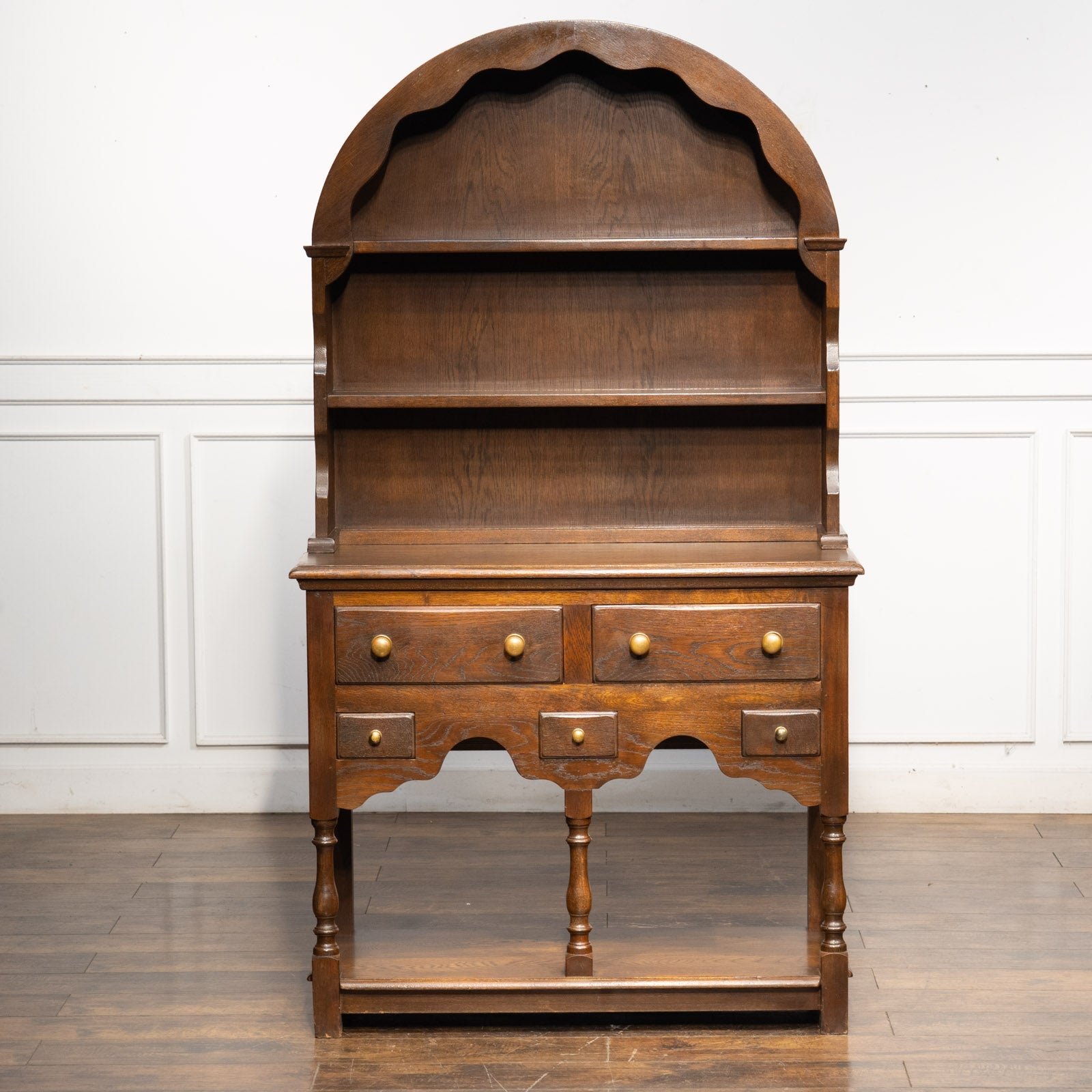 英国ではこのような上部分がオープンな棚で、下部分に食器やカトラリーを収納する引出しや扉がある食器棚をウェルシュドレッサーと呼びます。