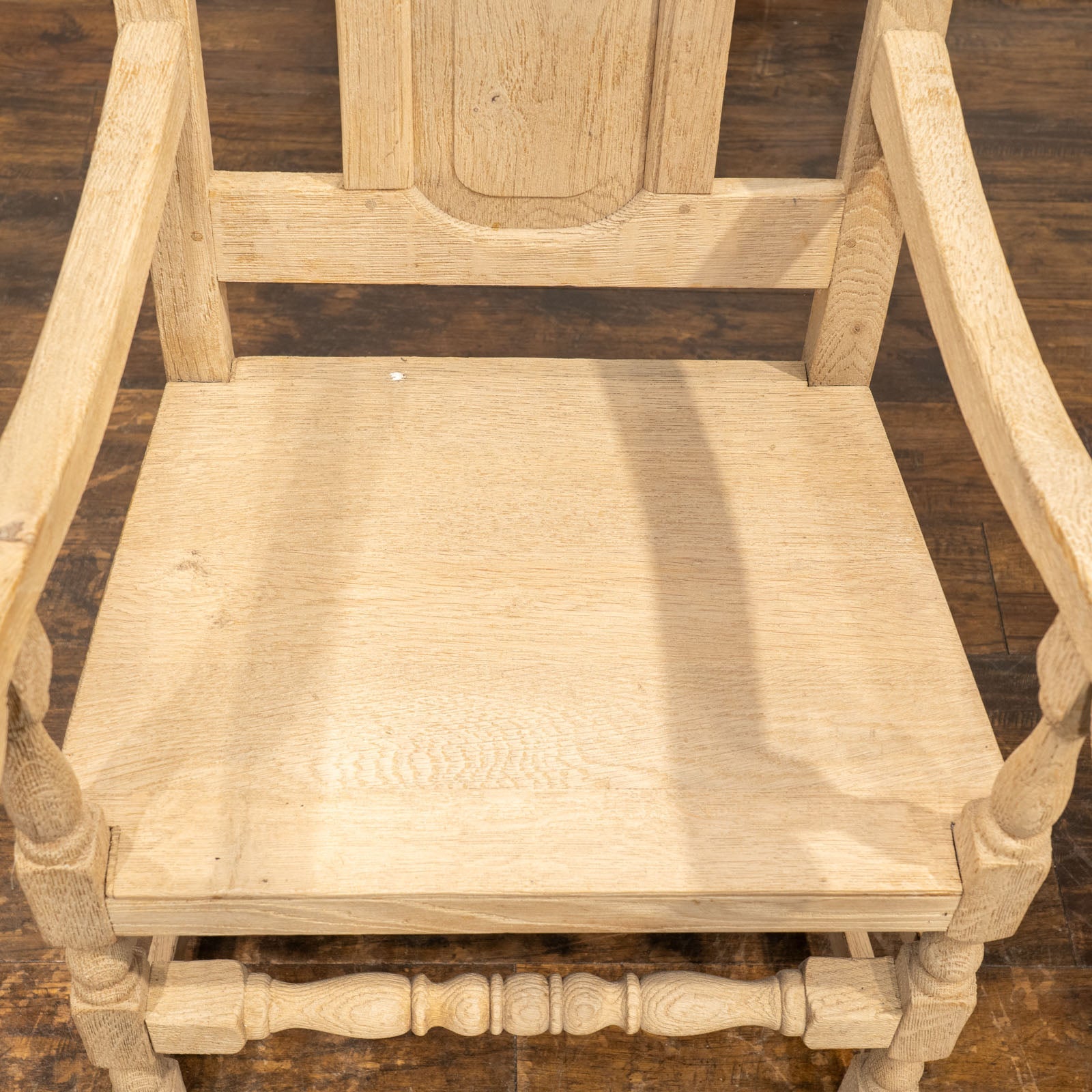 こちらはイギリスから買付けた、オークの無垢材で作られたストリップドファニチャーのダイニングアームチェアです。