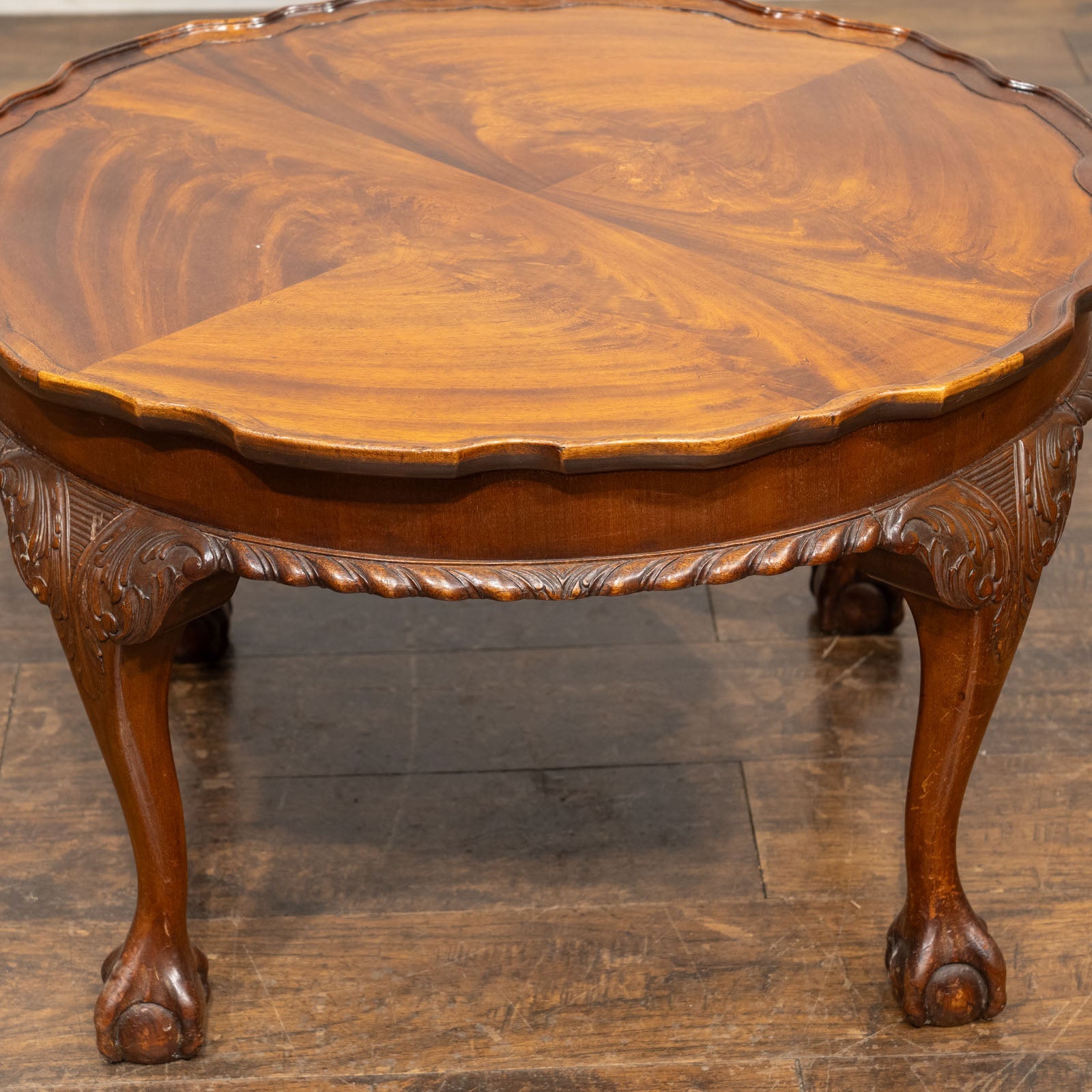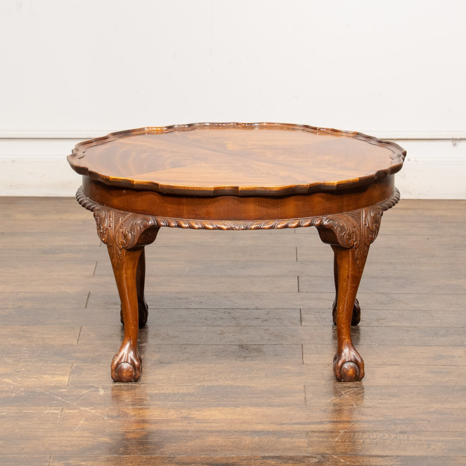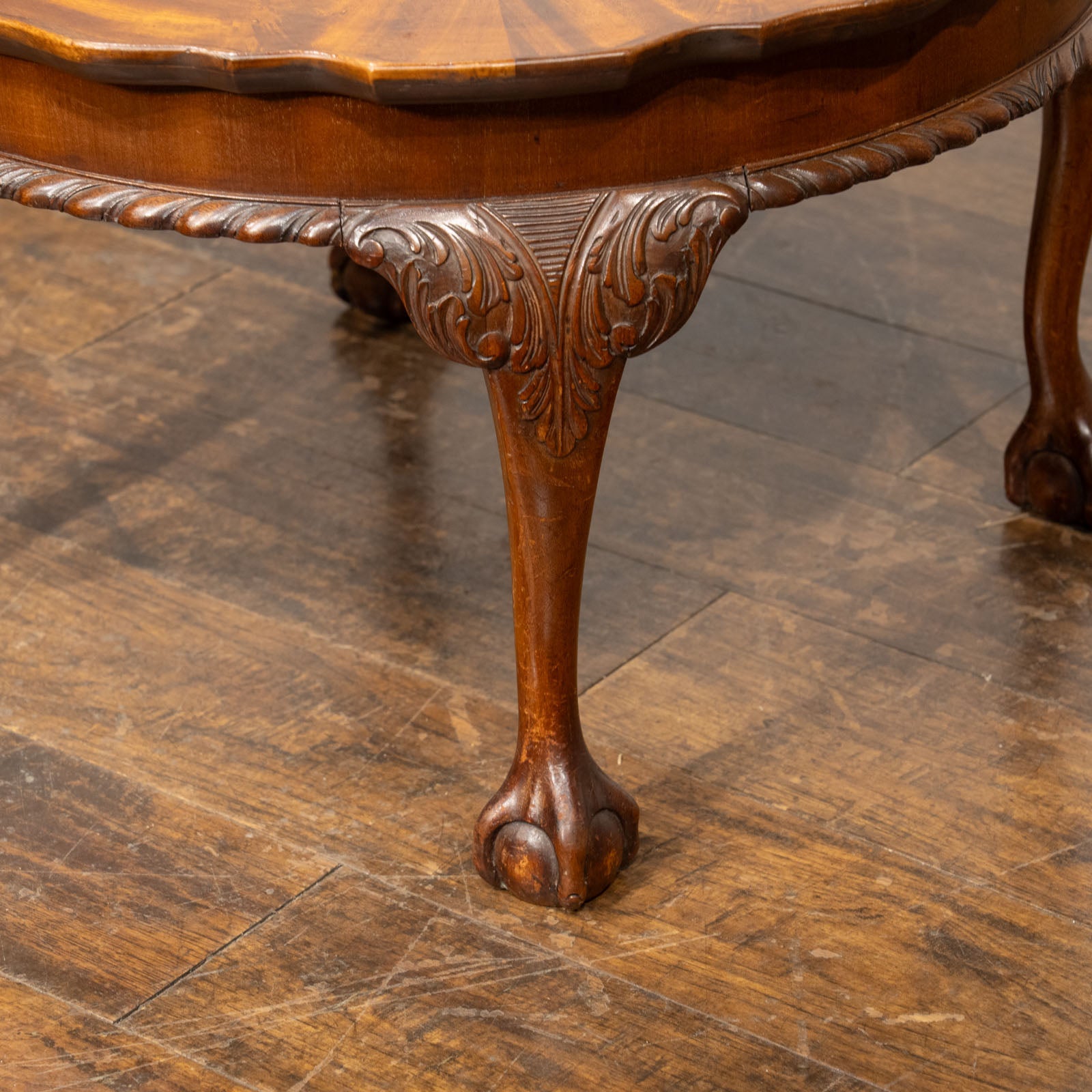 繊細なアカンサスリーフが刻まれたカブリオールレッグの脚先にはクラシカルなクロウ&ボールの装飾が施されており、上品な存在感を放ちます。