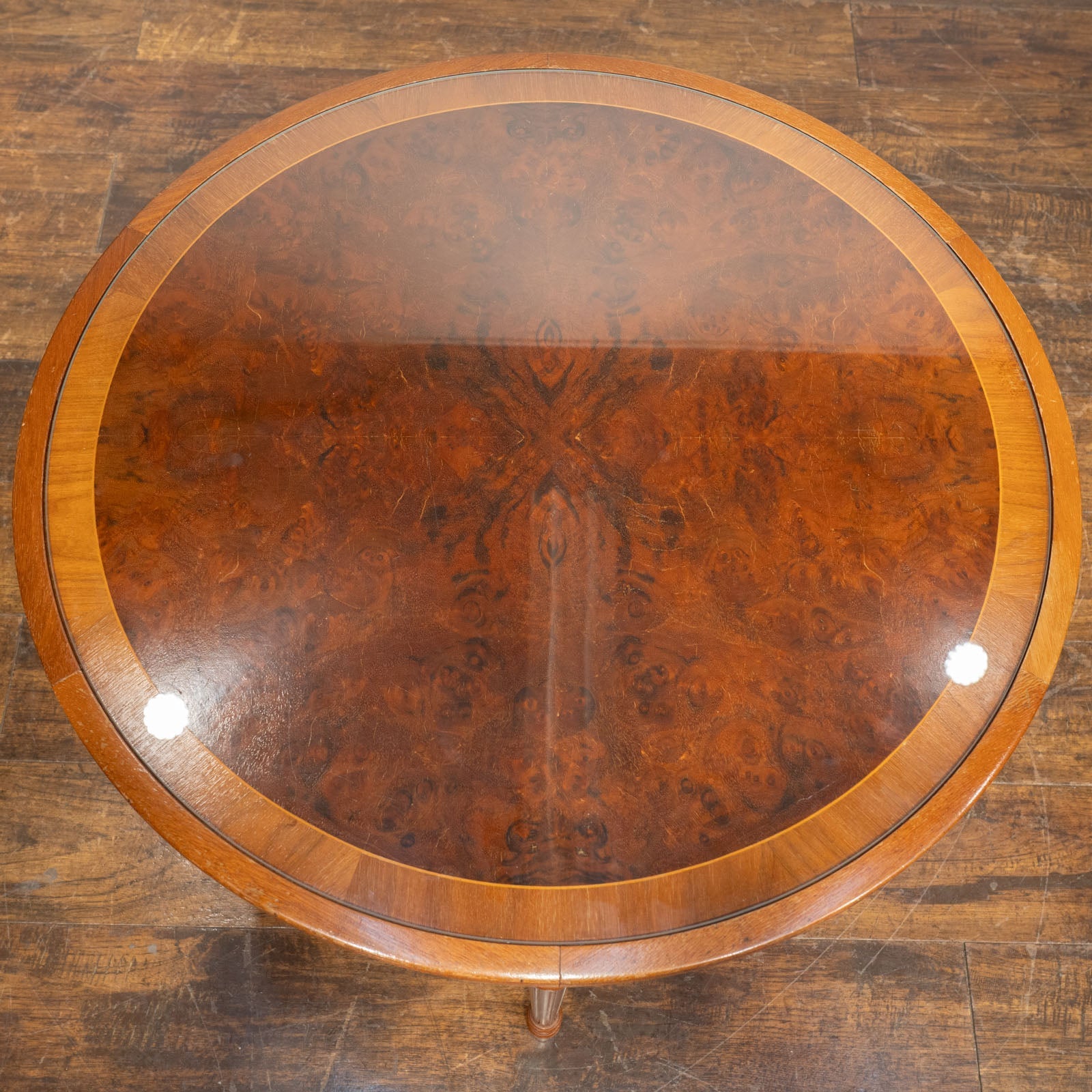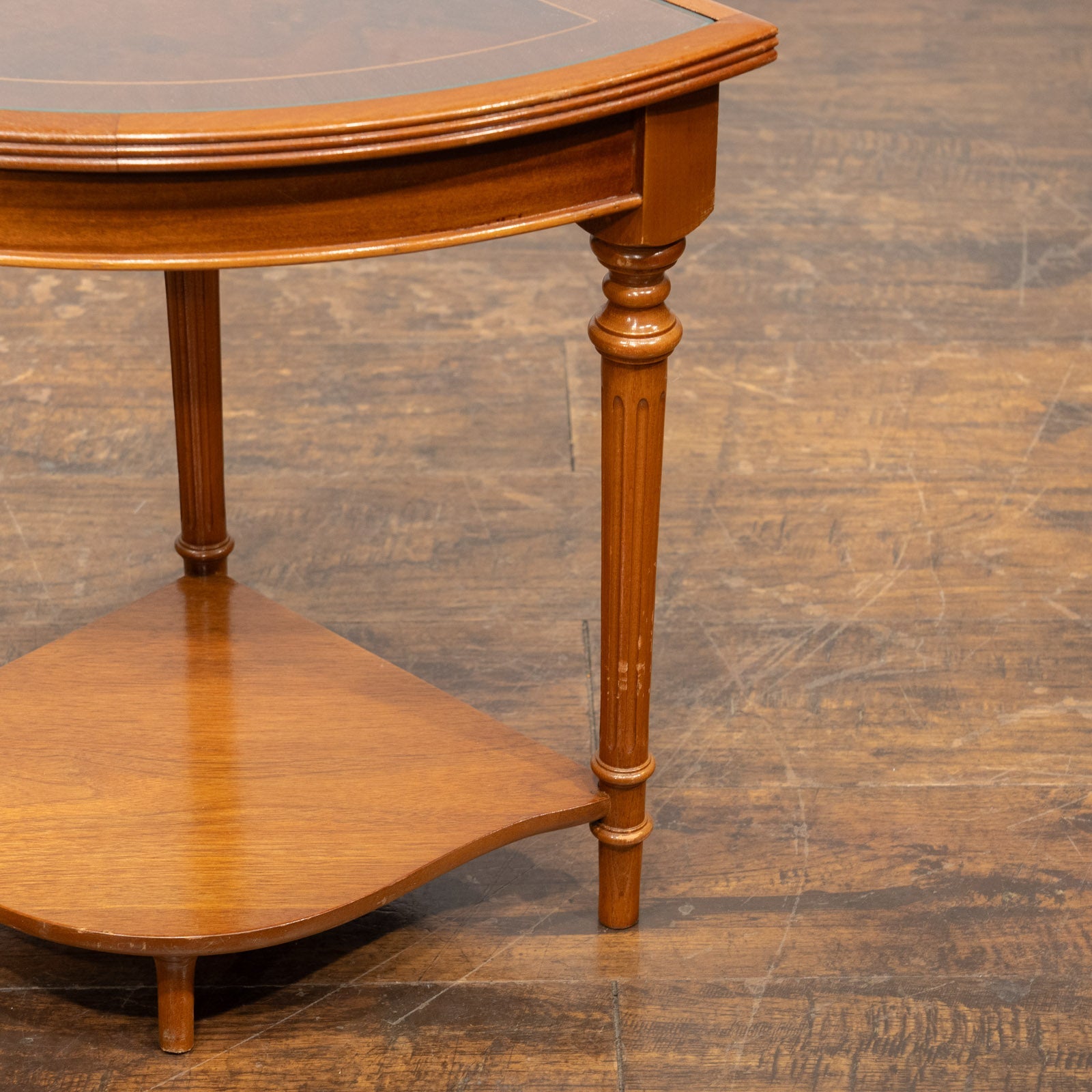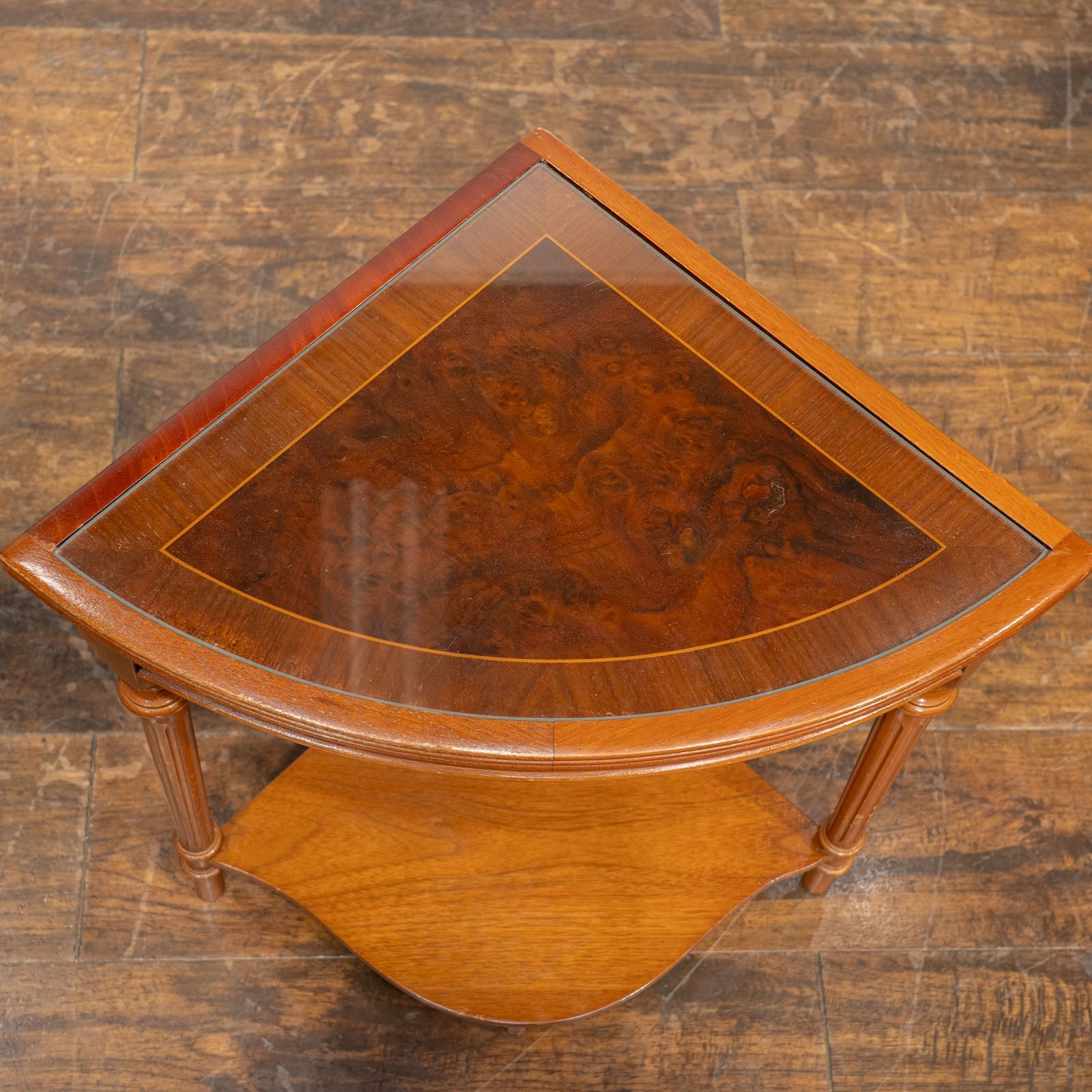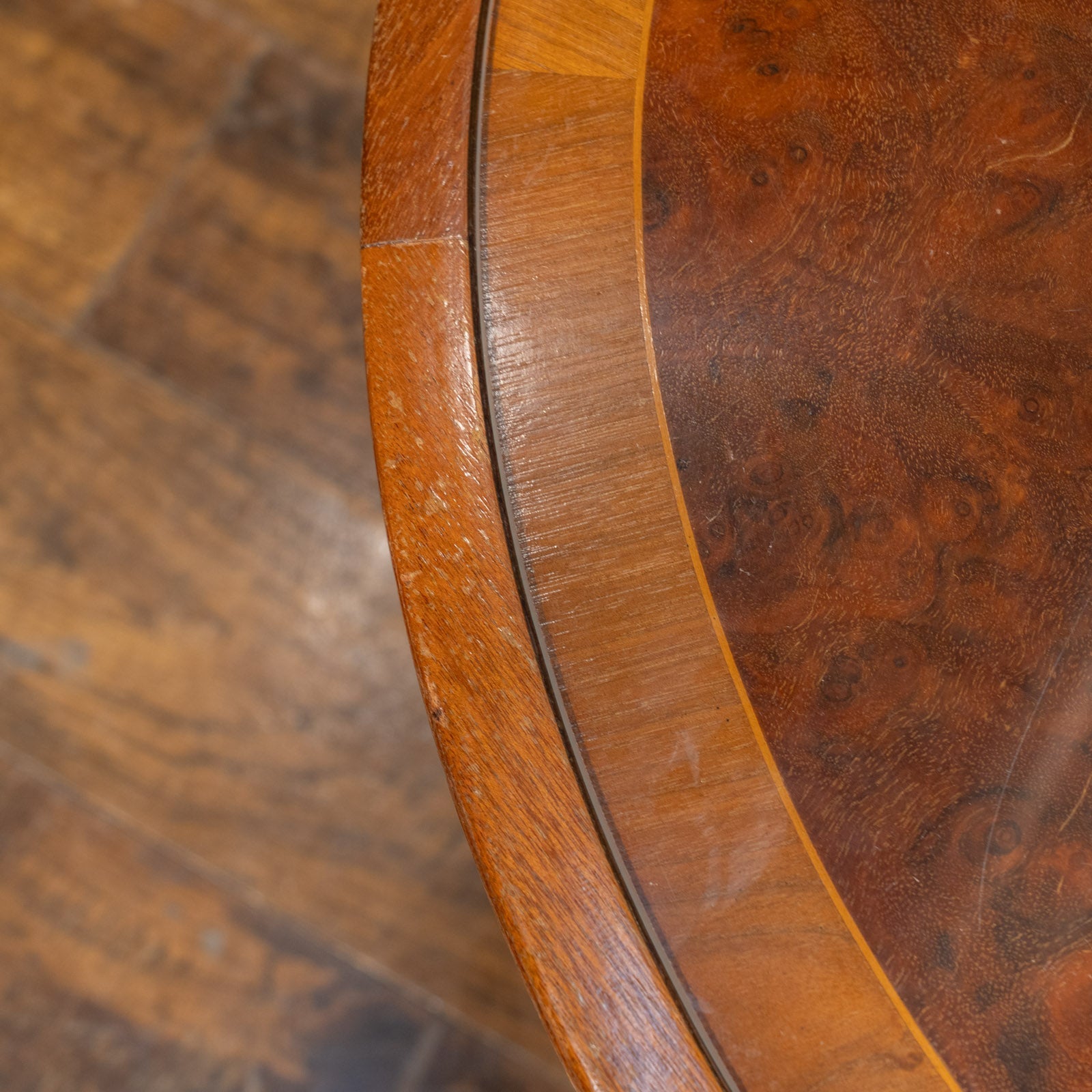 こちらはイギリスから買付けた、シンメトリーのベニヤリング(杢目張り)天板が美しいネストテーブルです。