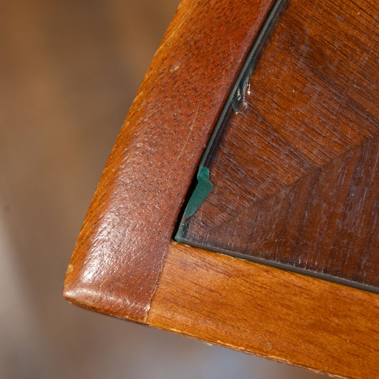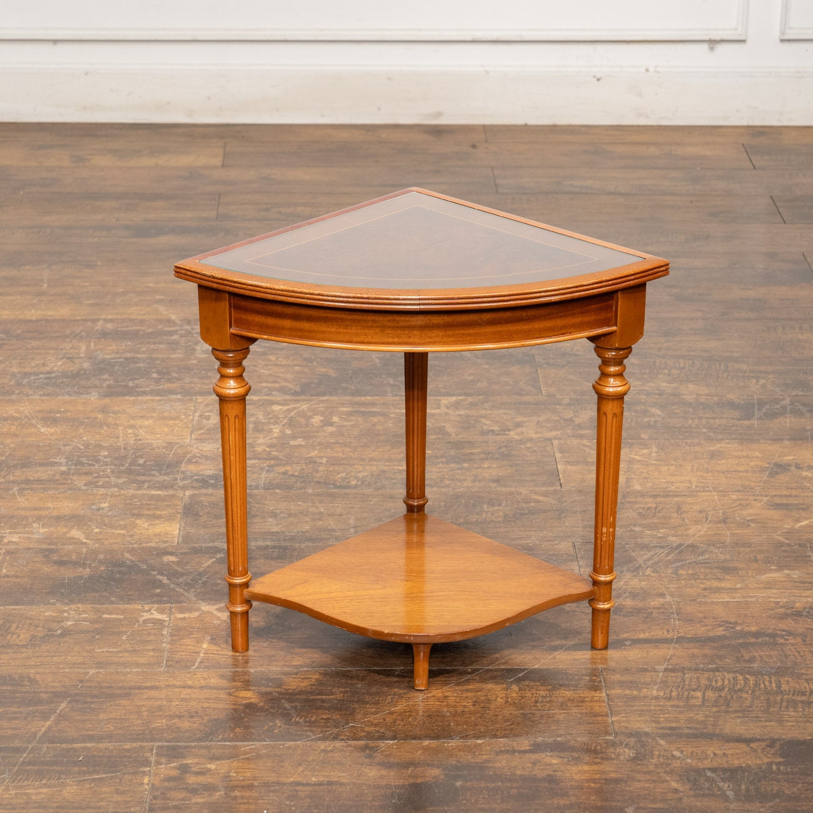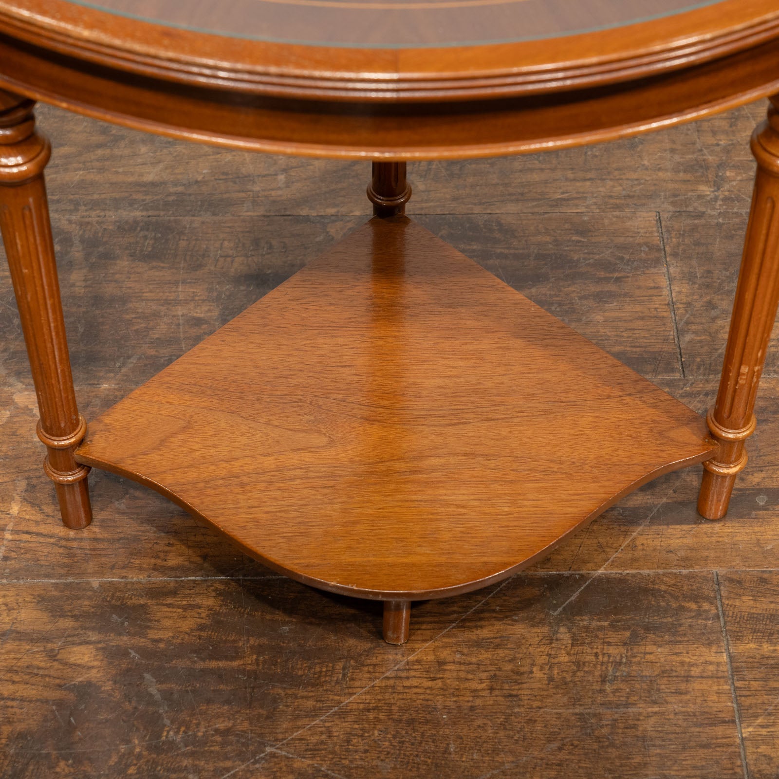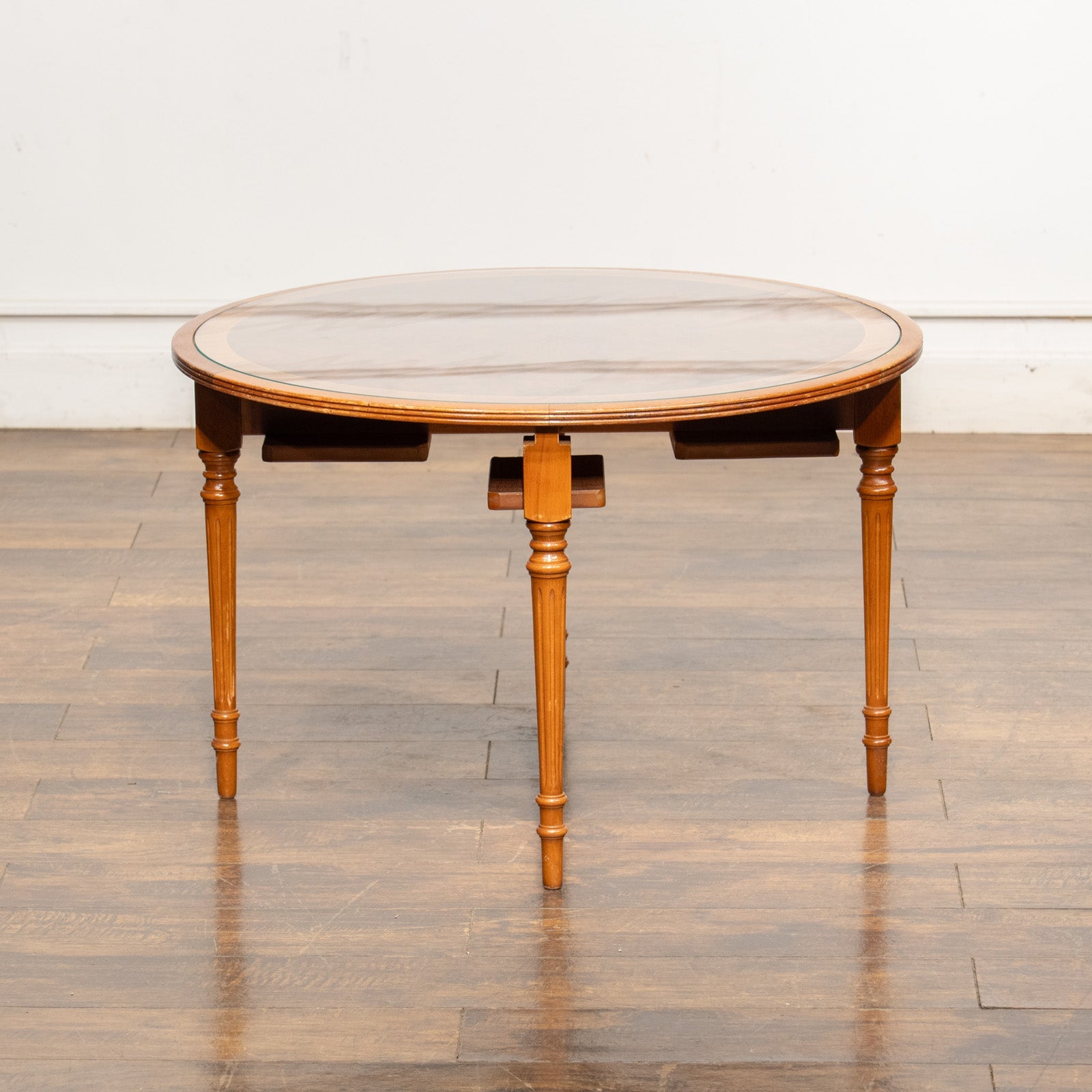 こちらはイギリスから買付けた、シンメトリーのベニヤリング(杢目張り)天板が美しいネストテーブルです。