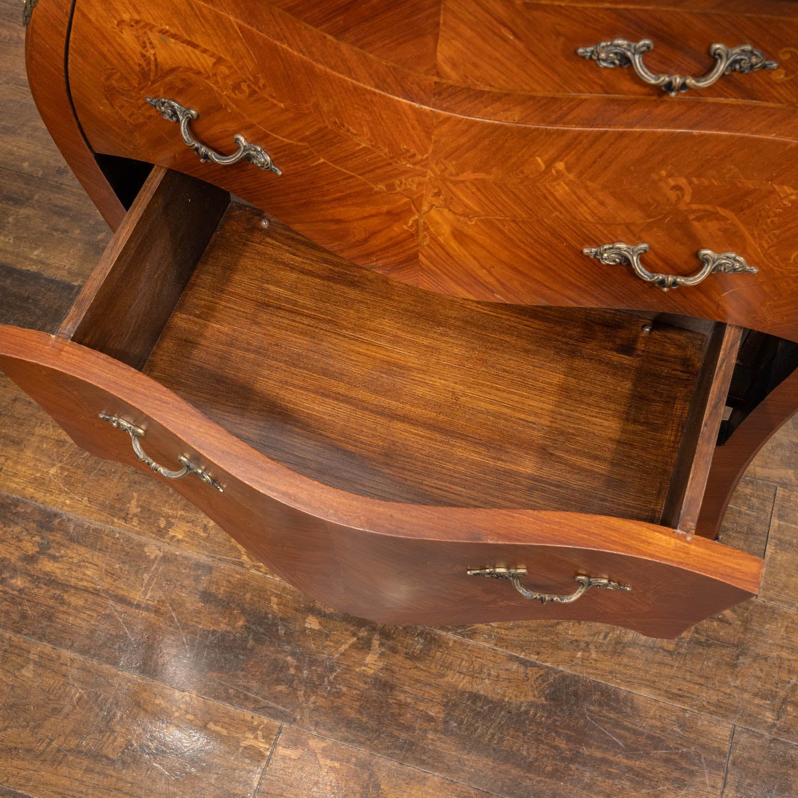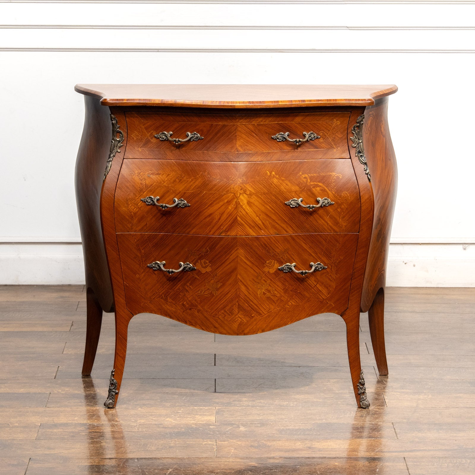 こちらはイギリスから買付けた、イタリアンスタイルの3段チェスト(ボンベコモード)です。
