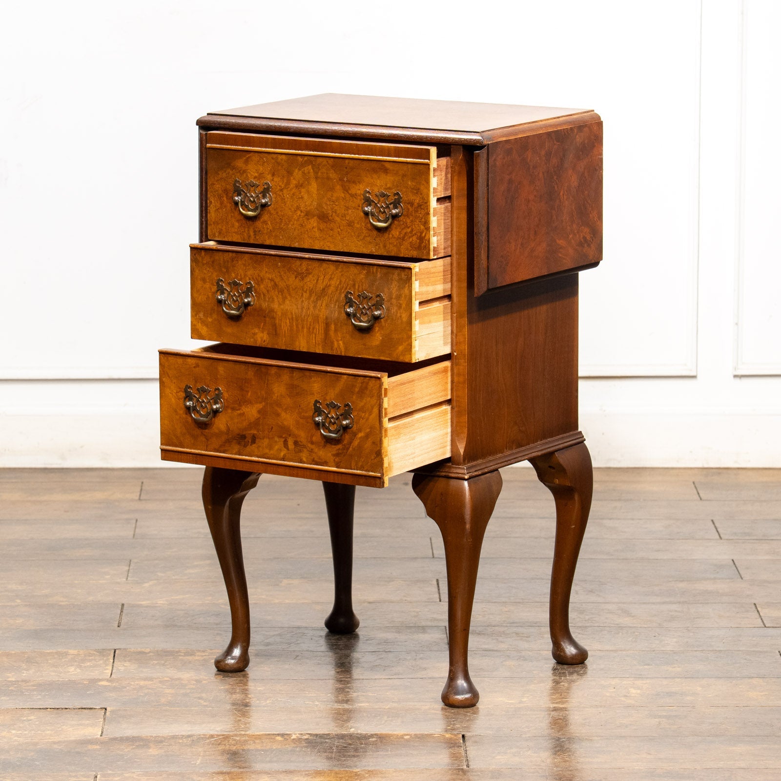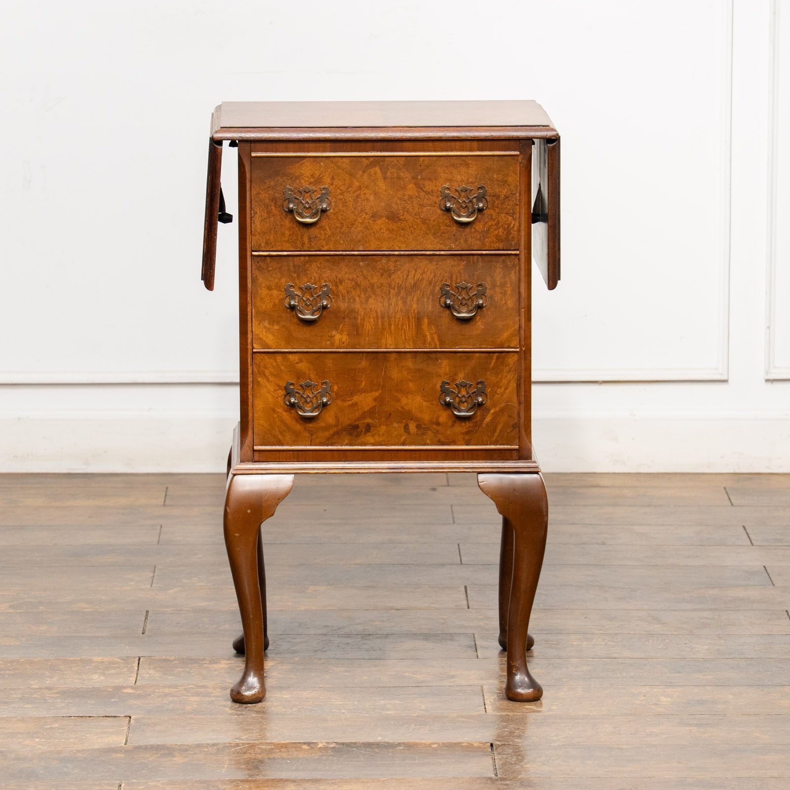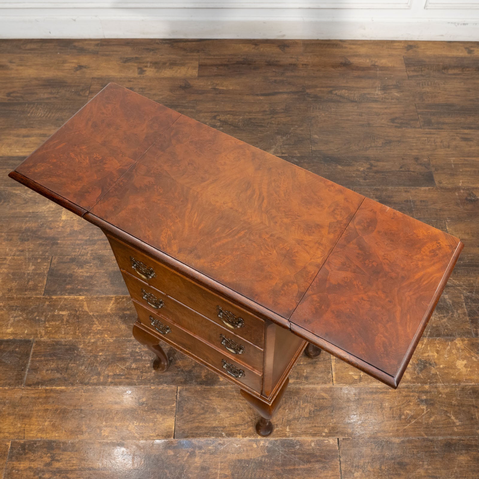 しなやかなカブリオールレッグが優美で、天板はドロップリーフスタイルになっています。
