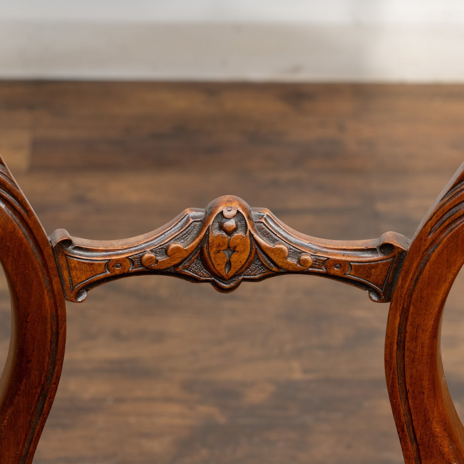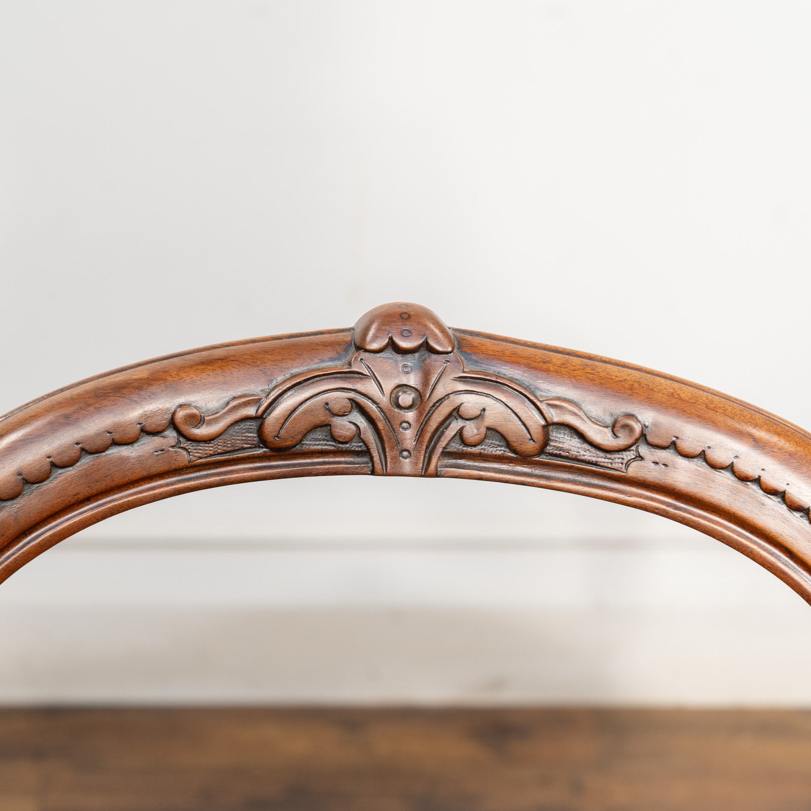 こちらはイギリスから買付けた、ウォールナットの無垢材で作られたバルーンバックチェアです。