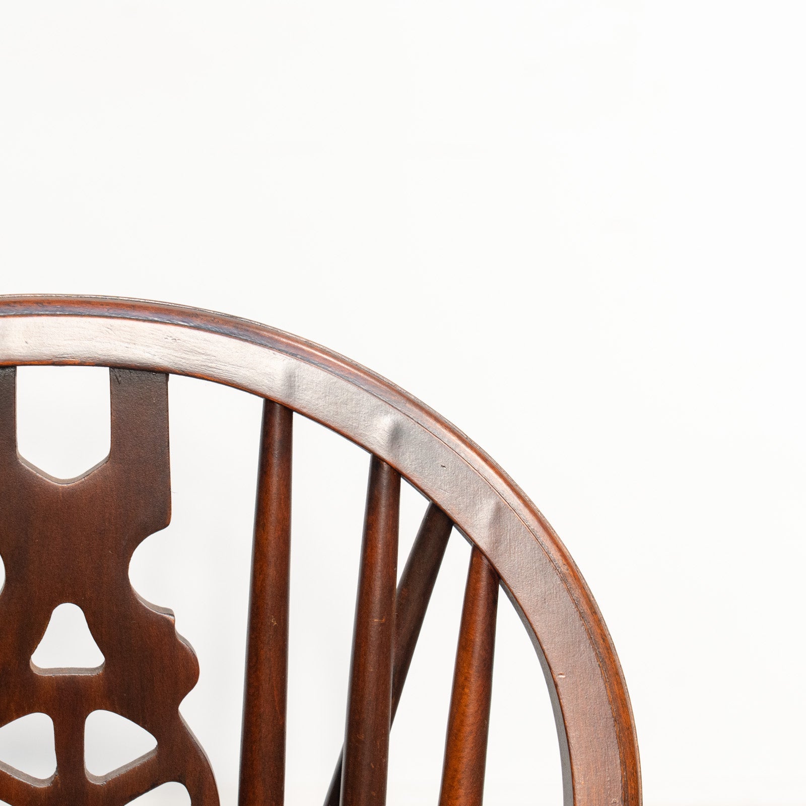ホイールバックとは、背もたれ中央の背板に木製車輪(ホイール)を模った彫刻装飾があることにちなみます。