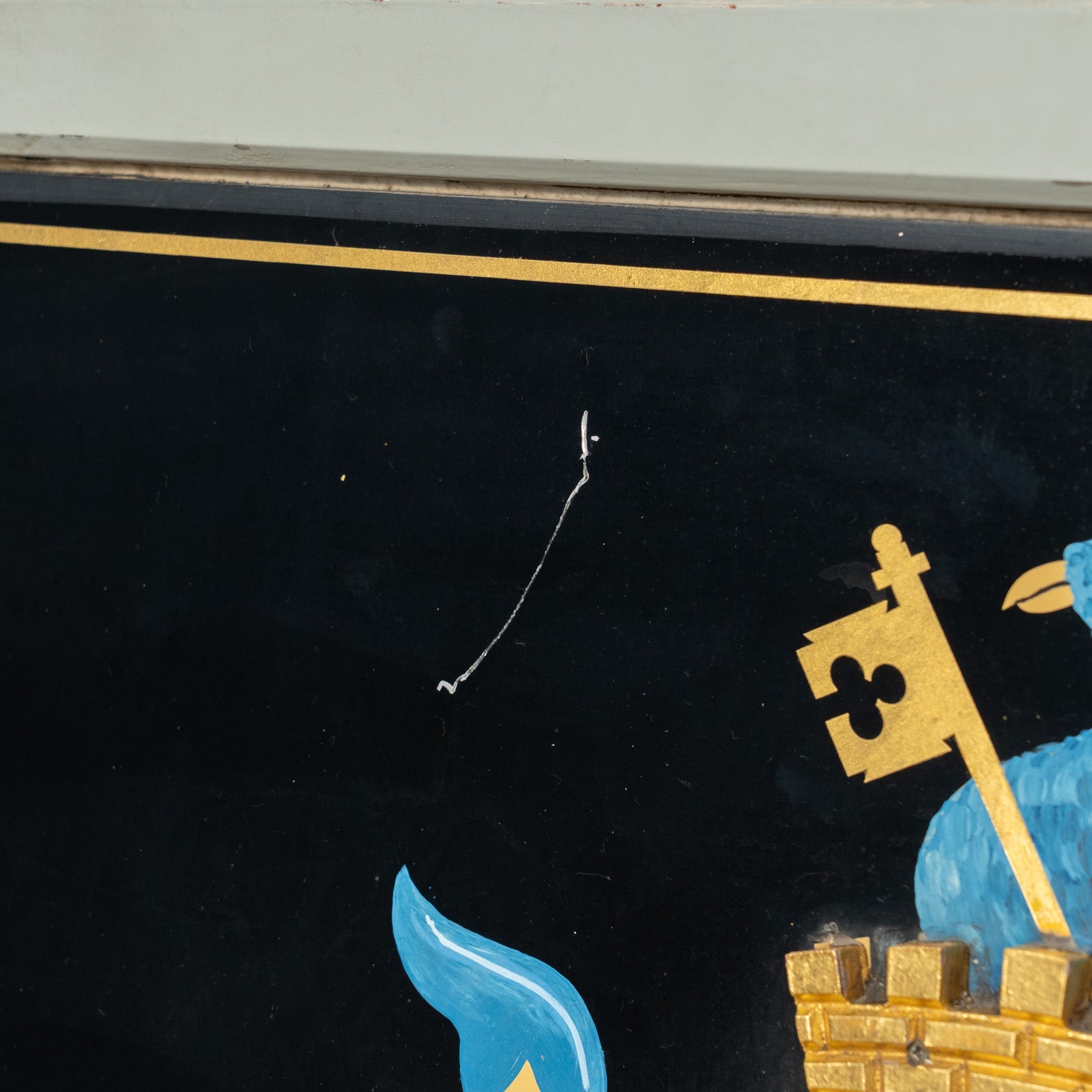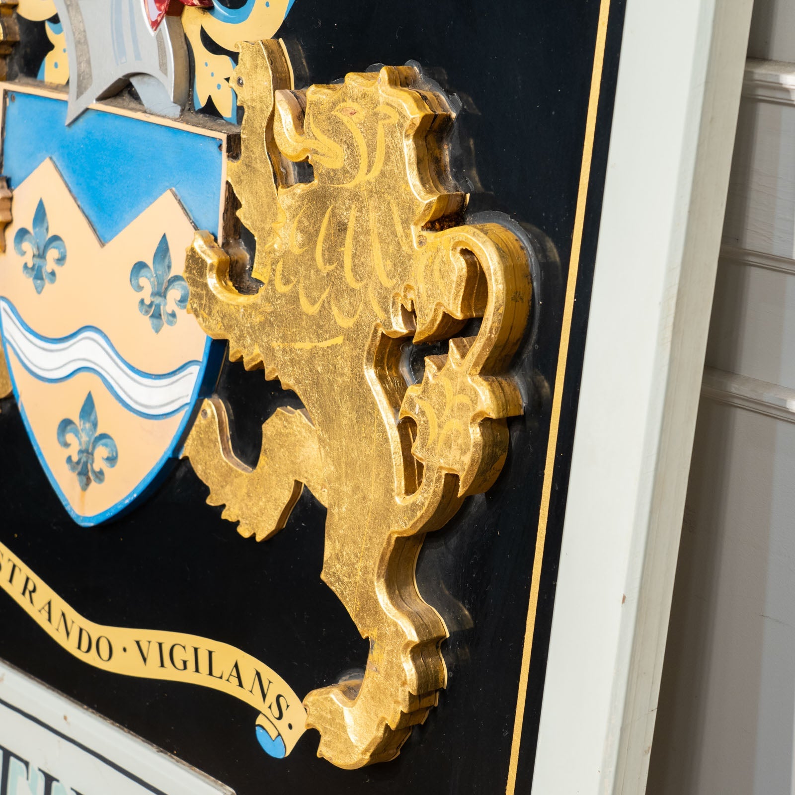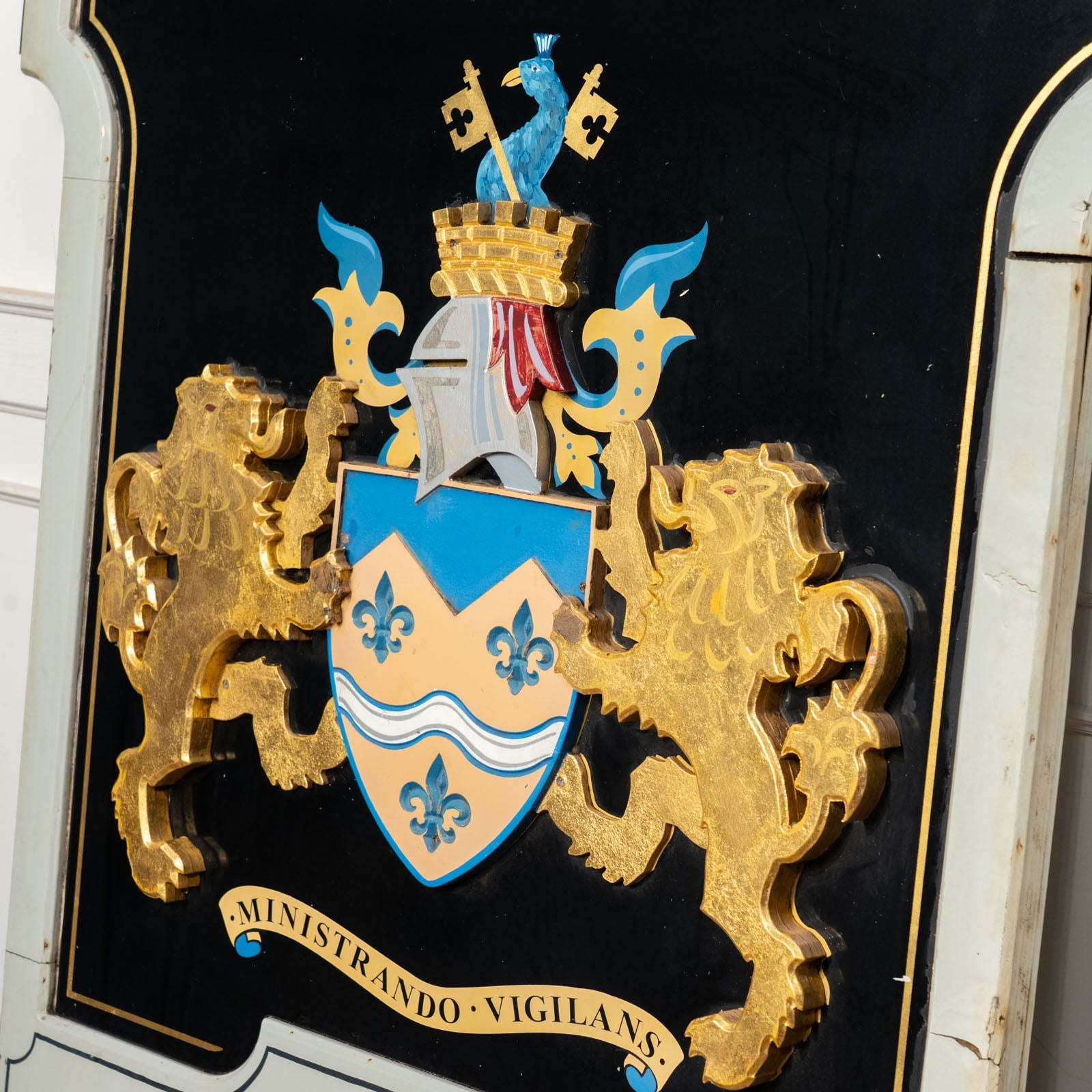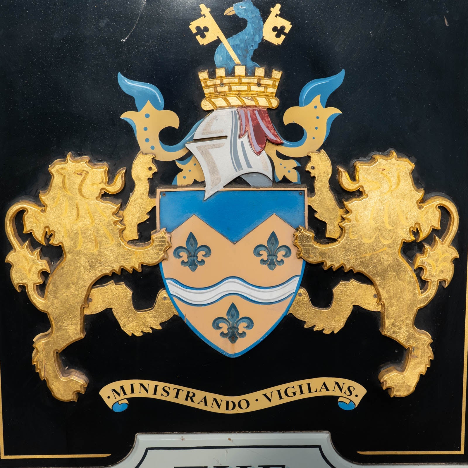 店名の「THE WOTTON HATCH」、2頭のライオンや冠などのイギリスの紋章が描かれてており、中央下にはラテン語で「MINISTRANDO VIGILANS(奉仕に油断なく)」というモットーが記されています。