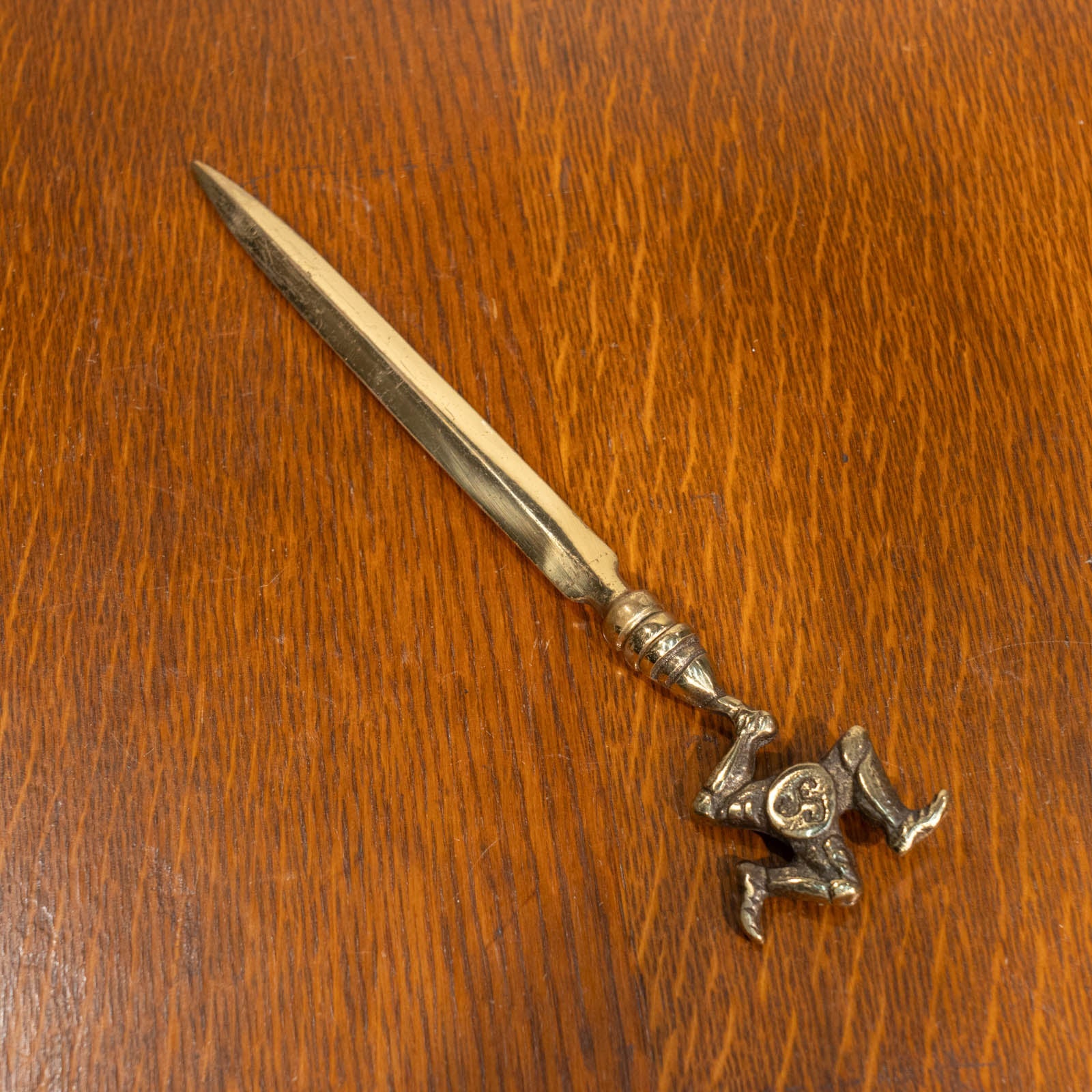 こちらはイギリスから買付けた、三脚巴のトリスケリオンモチーフが印象的なペーパーナイフです。