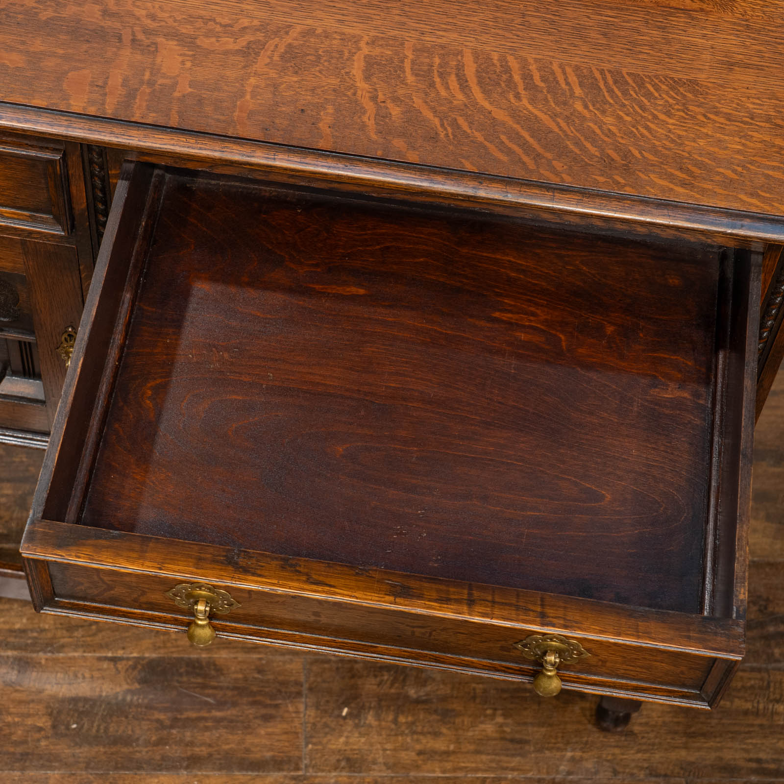 こちらはイギリスから買付けた、味わい深いオーク材で作られたサイドボードです。