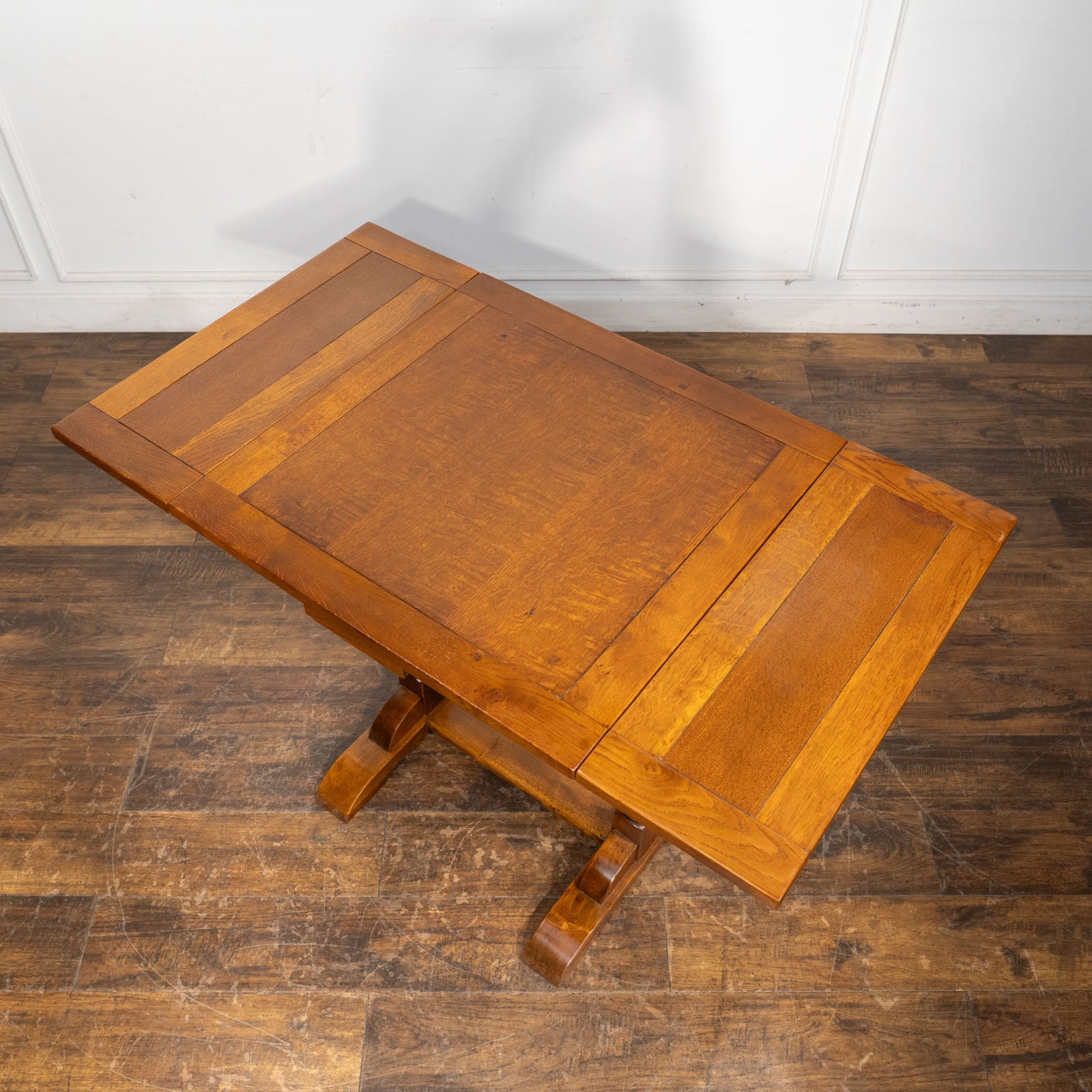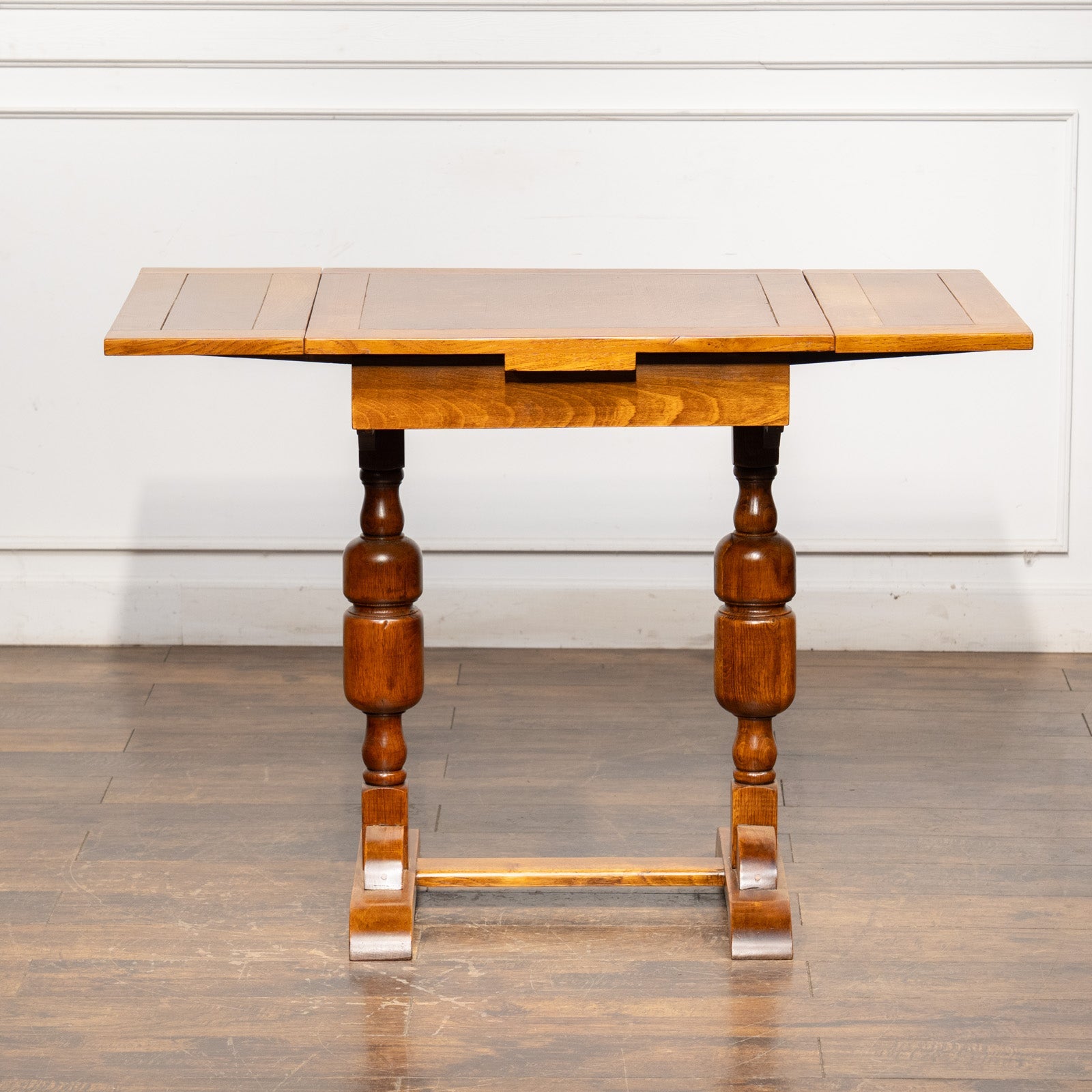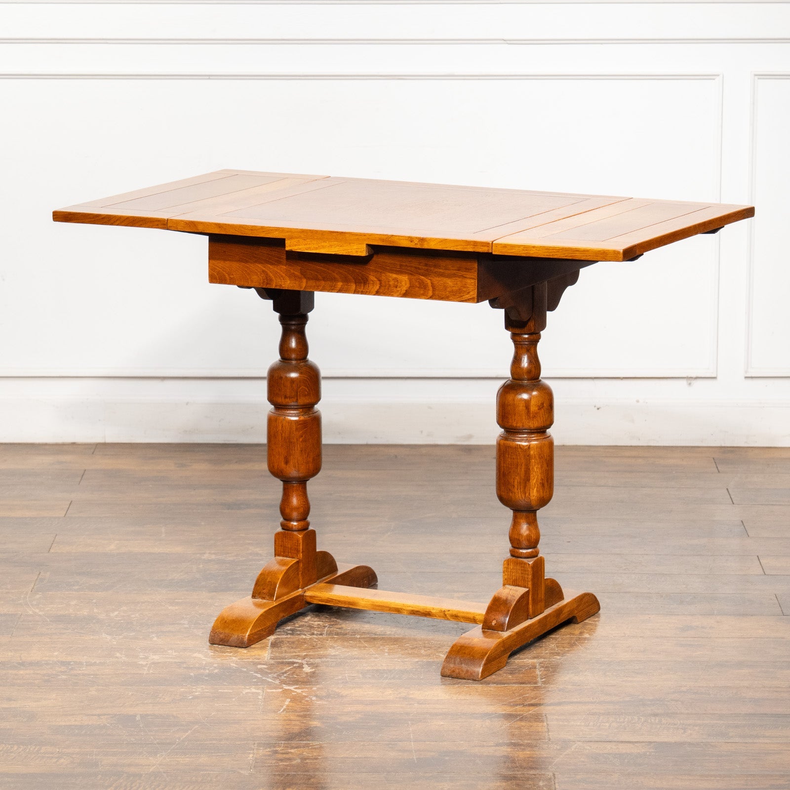 こちらはイギリスから買付けた、味わい深いオーク材が使われたドローリーフテーブルです。