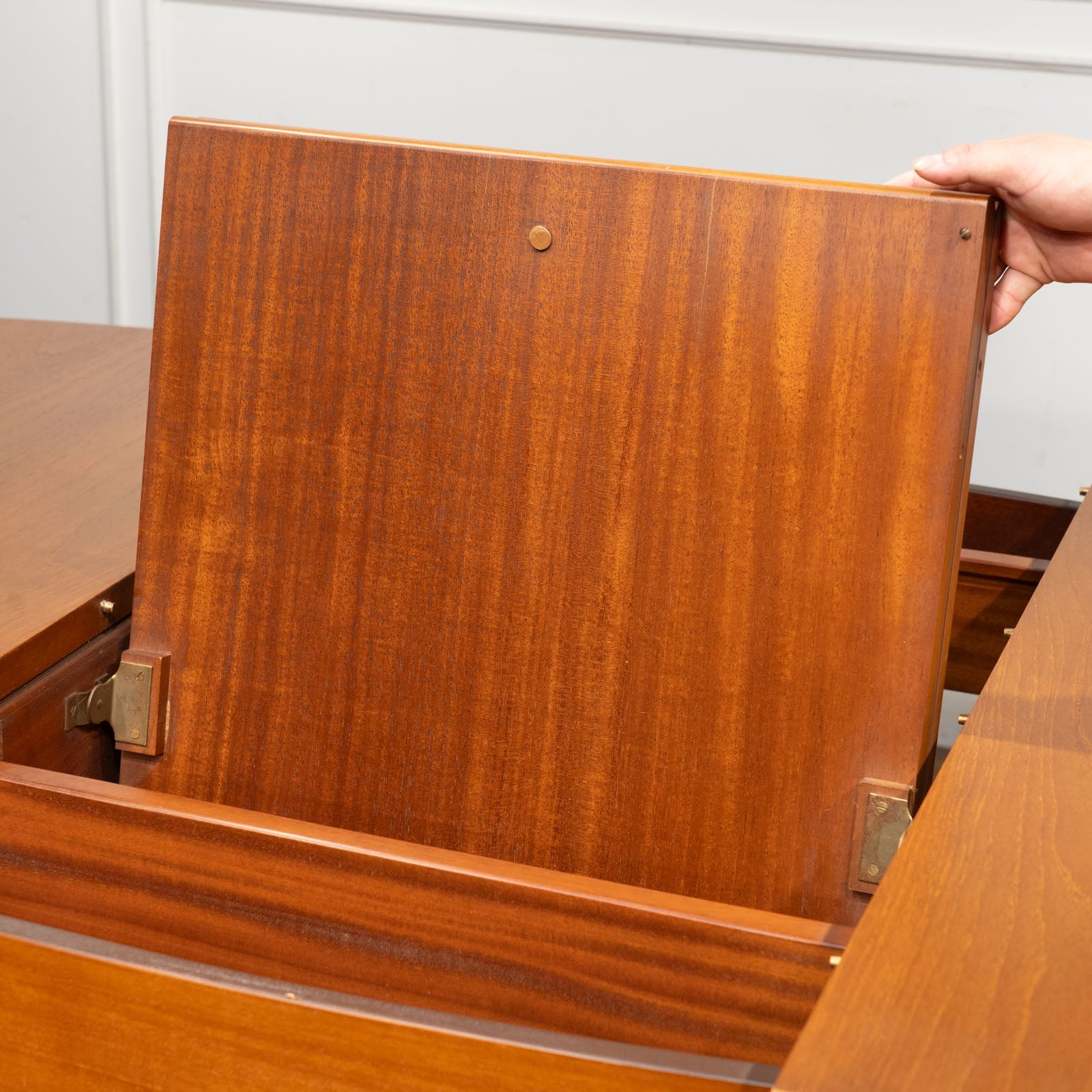 エクステンションテーブル(伸長式テーブル)とは、甲板が左右に開き、間に補助天板を足して広く使えるテーブルのこと。