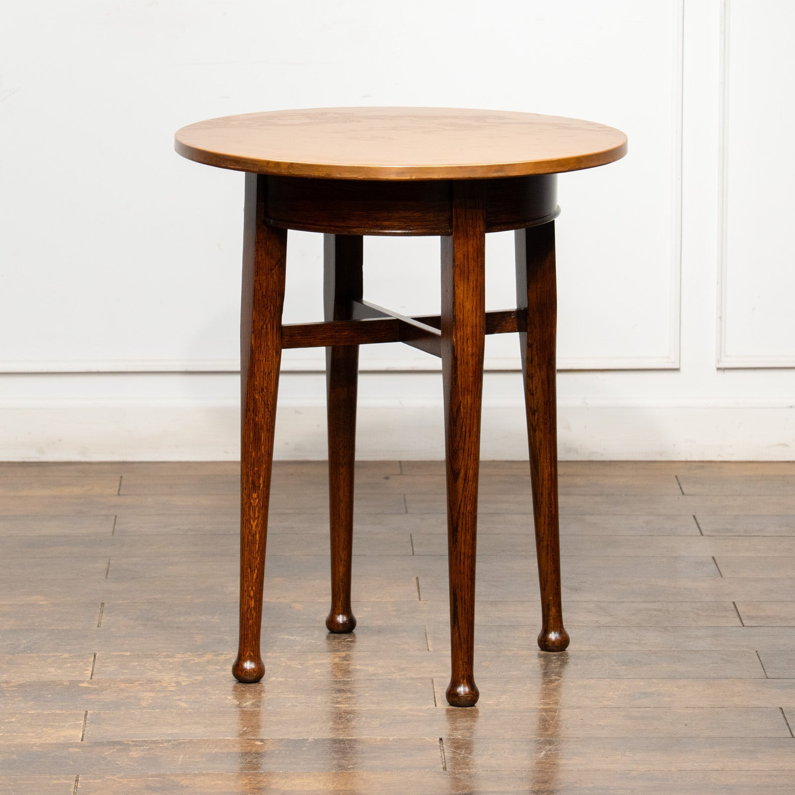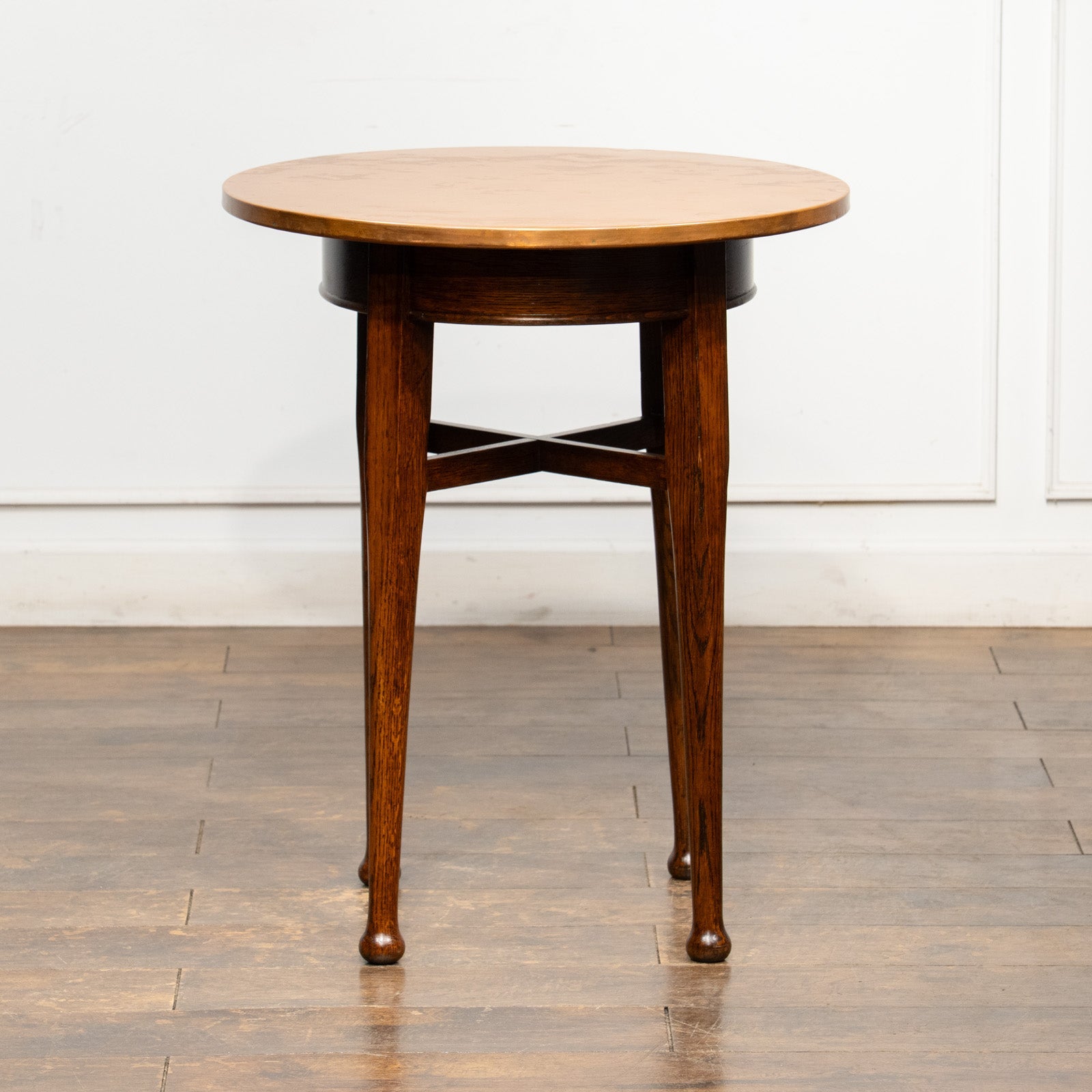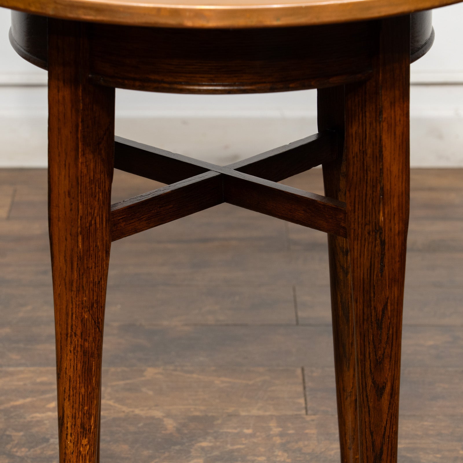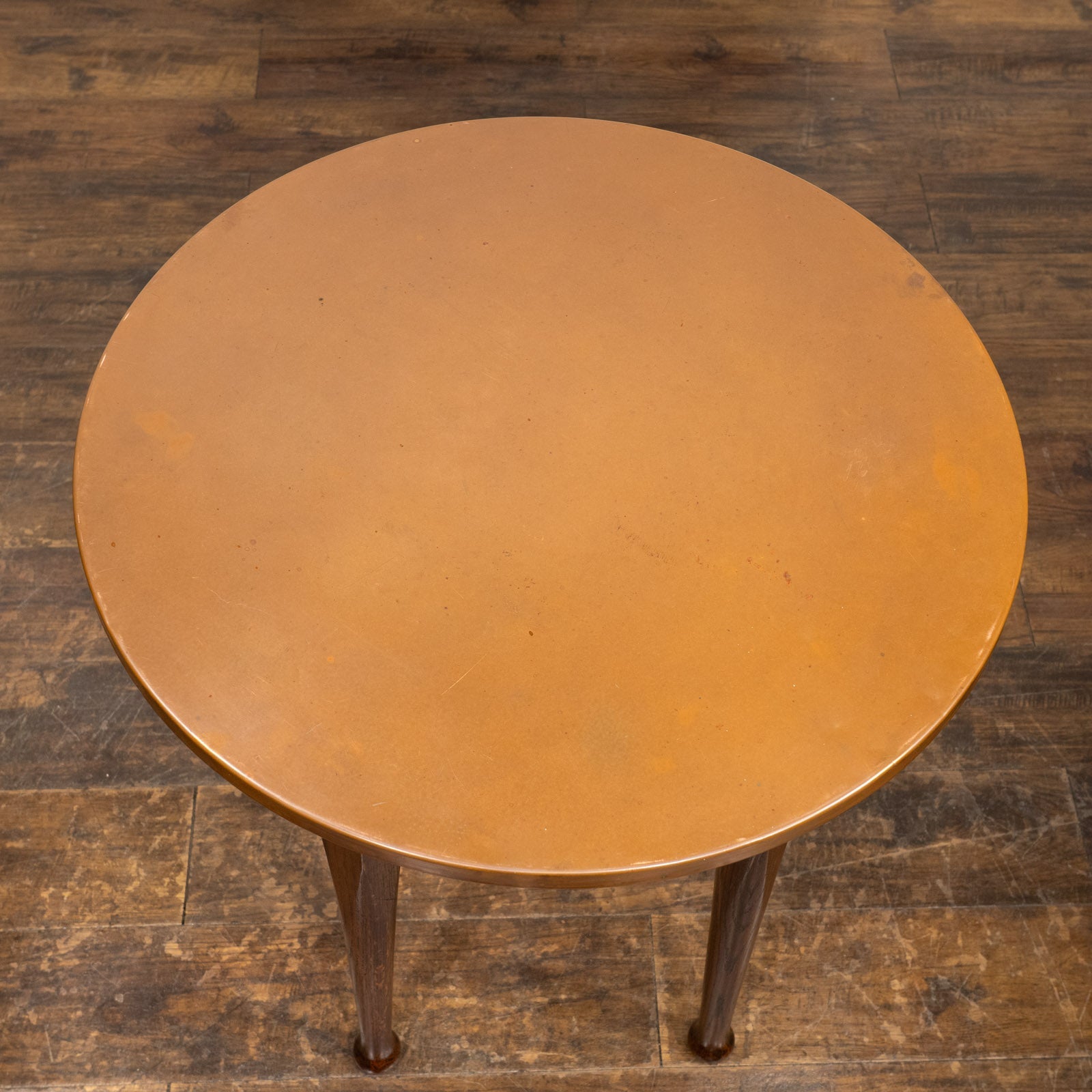 こちらはイギリスから買付けた、ちょっと珍しい銅製の天板のラウンドパブテーブルです。