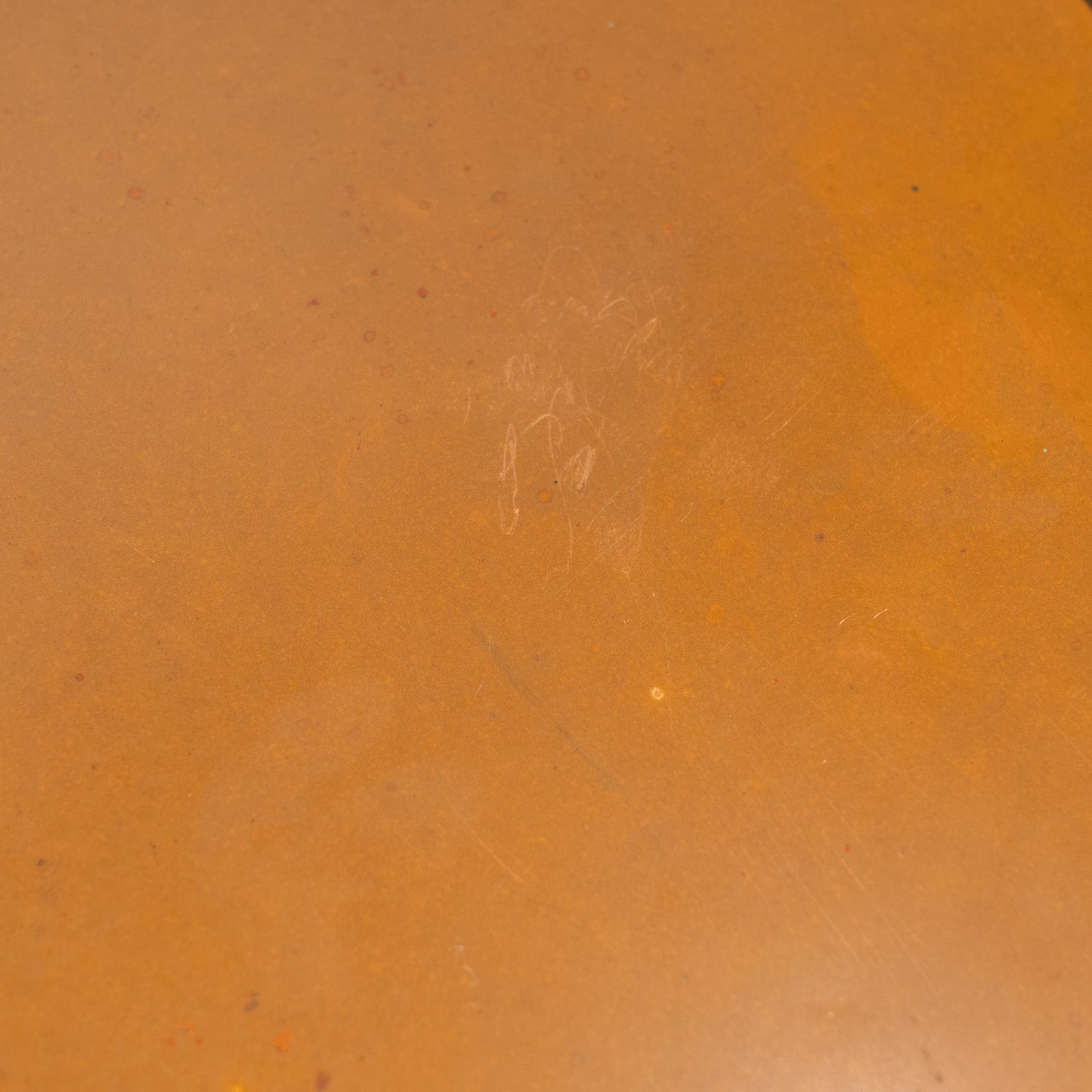 経年変化によって深みを増した銅の落ち着いた輝きは、木製天板にはない独特の重厚感とインダストリアルな雰囲気を醸し出します。