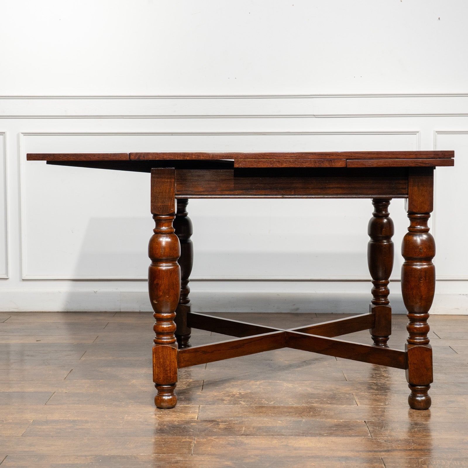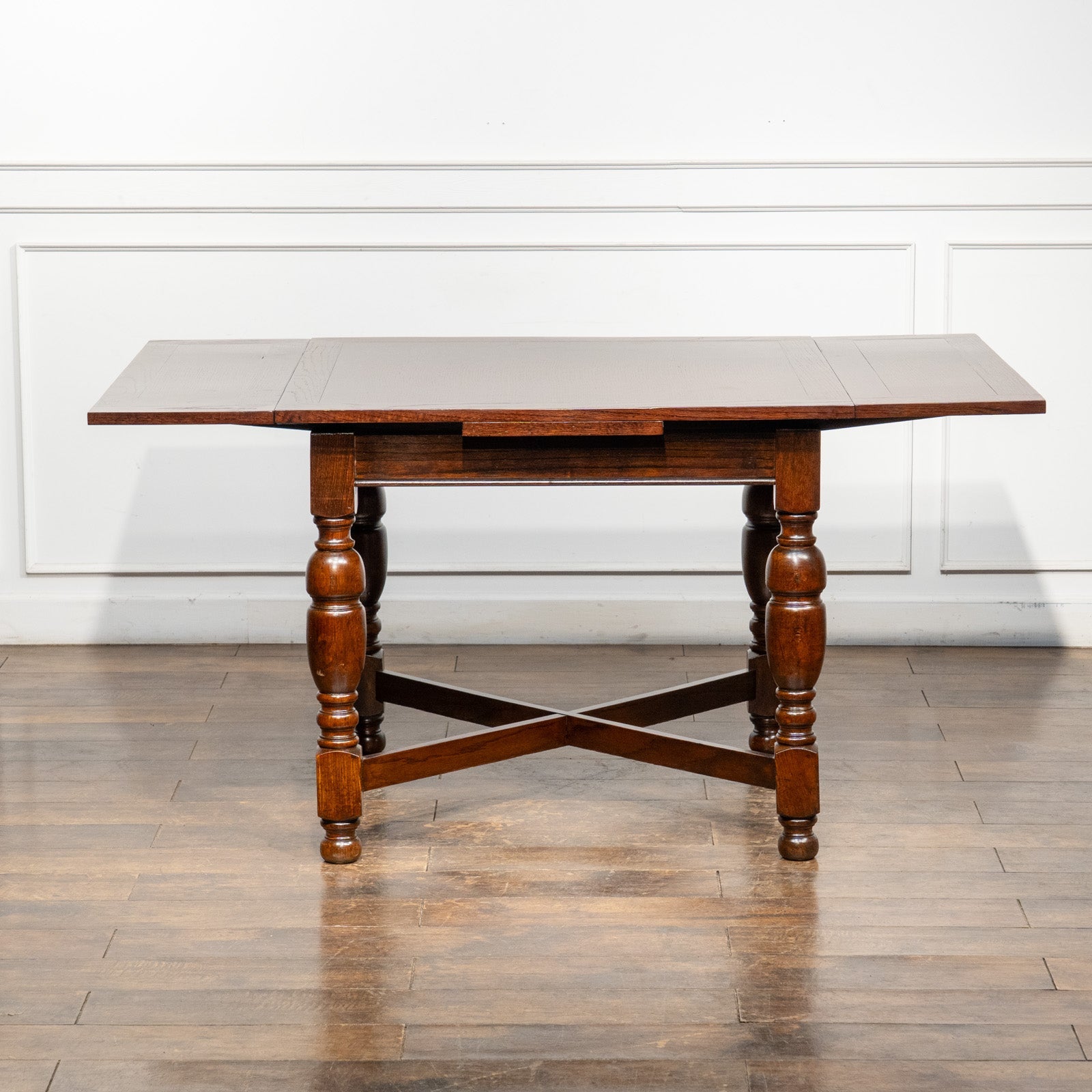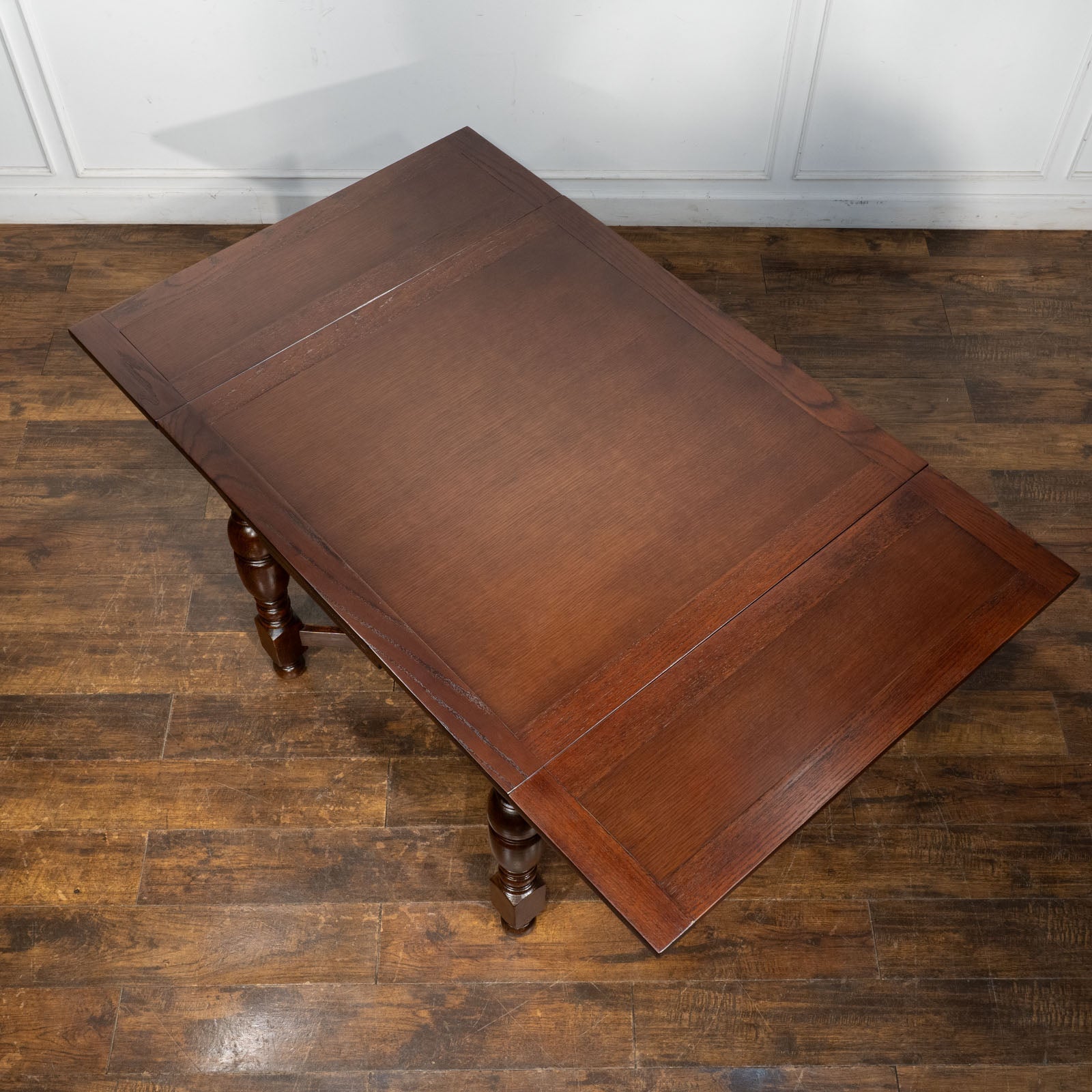 こちらはイギリスから買付けた、味わい深いオーク材が使われたドローリーフテーブルです。