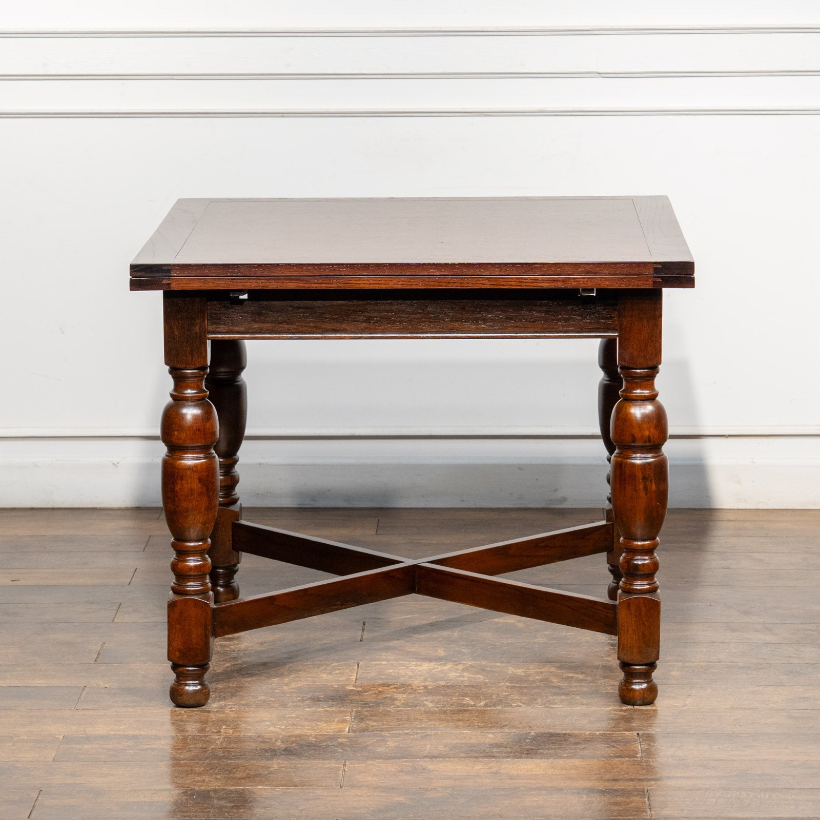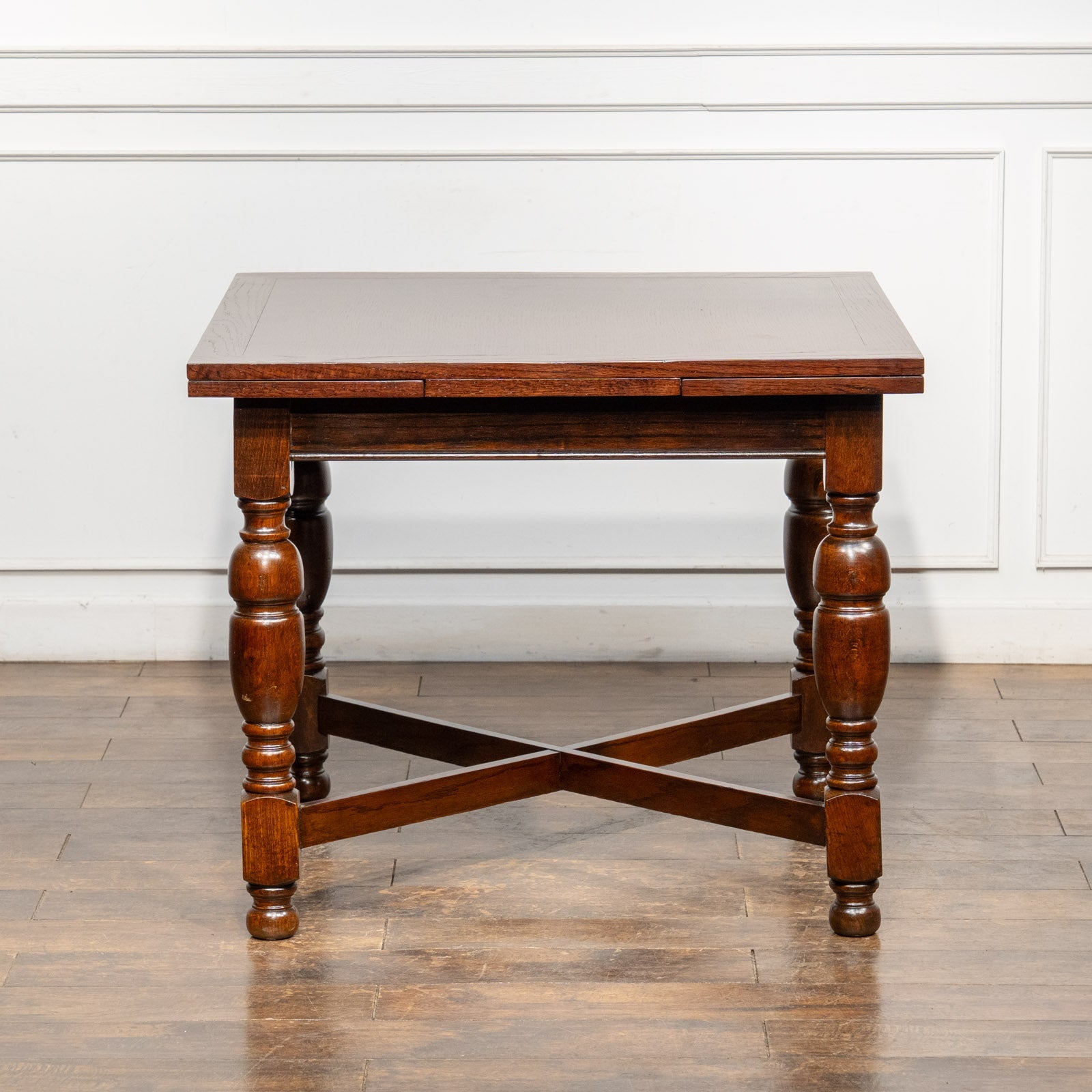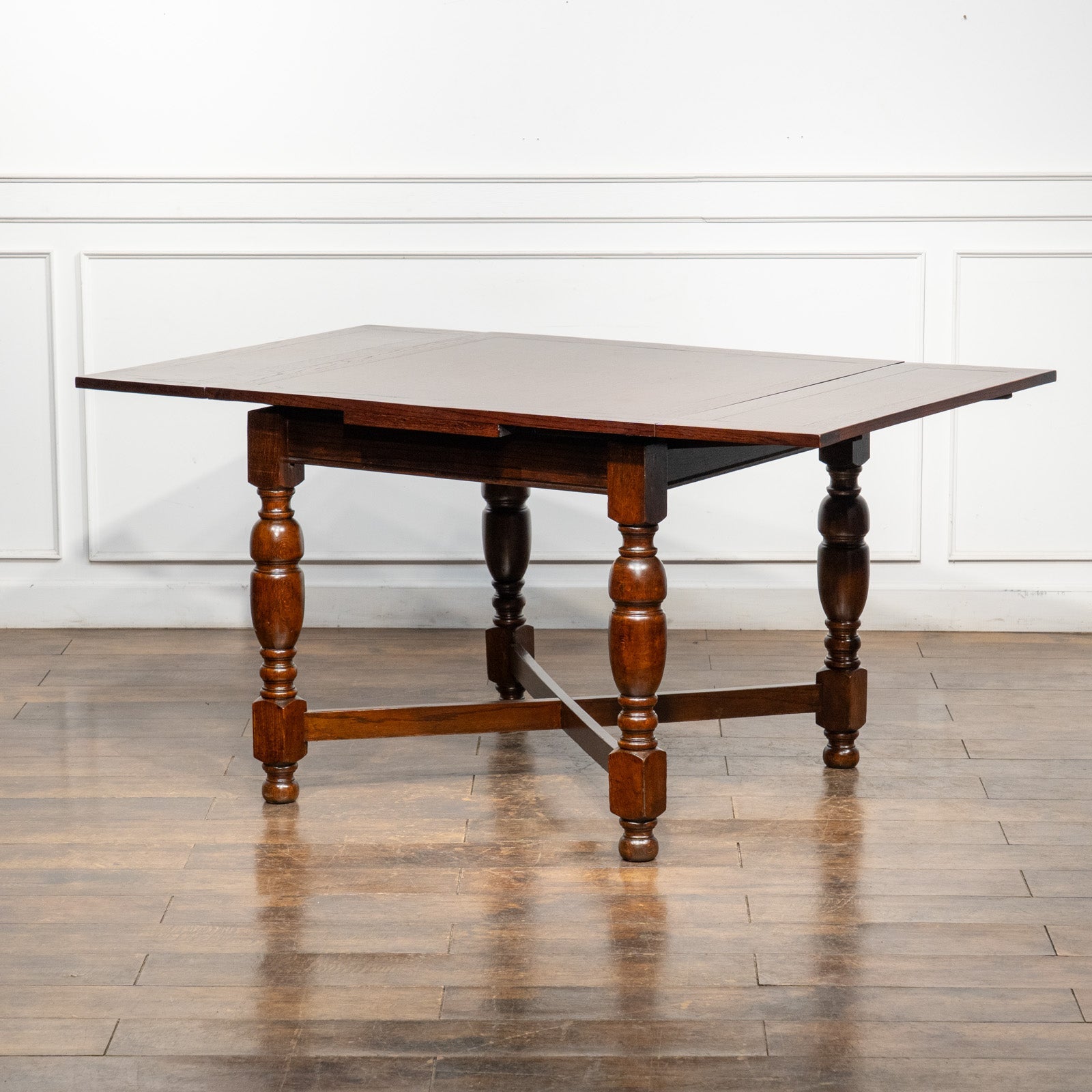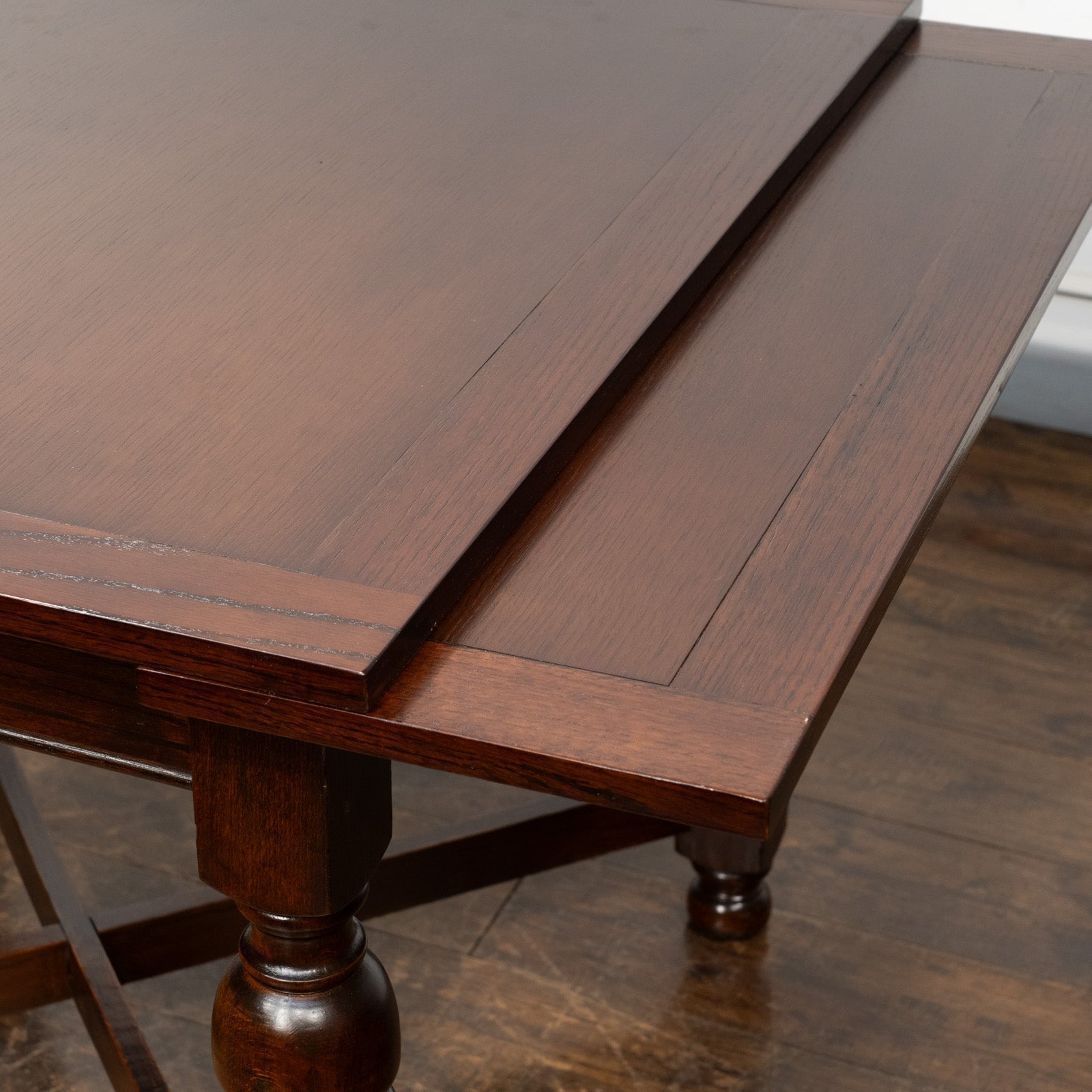 こちらはイギリスから買付けた、味わい深いオーク材が使われたドローリーフテーブルです。