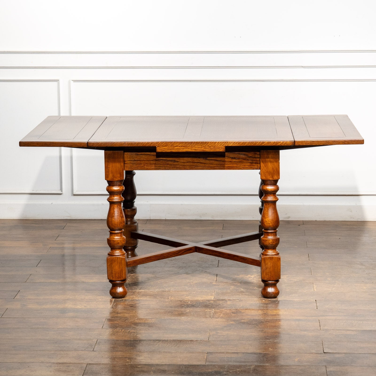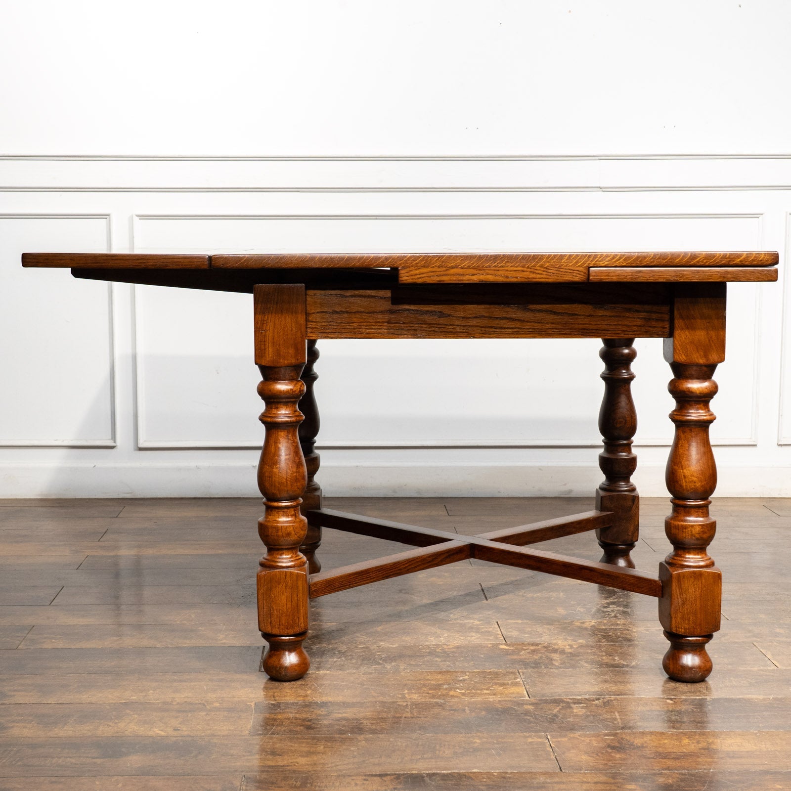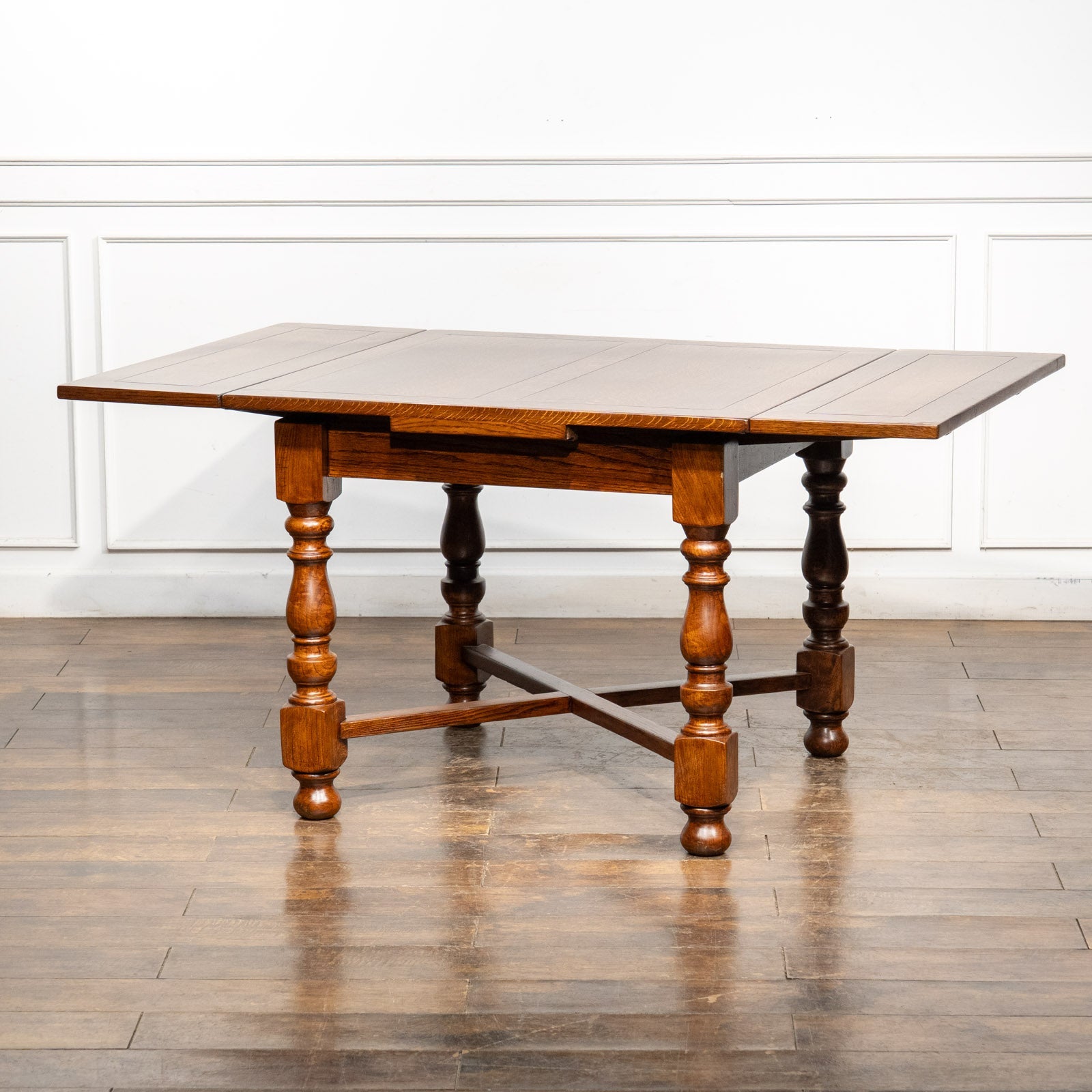 こちらはイギリスから買付けた、味わい深いオーク材が使われたドローリーフテーブルです。