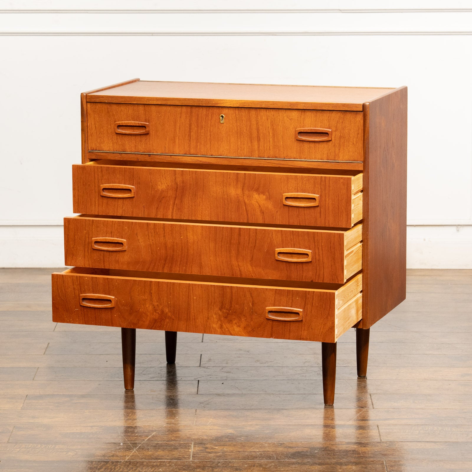 こちらはスウェーデンから買付けた、チークの無垢材で作られたドレッサーチェストです。