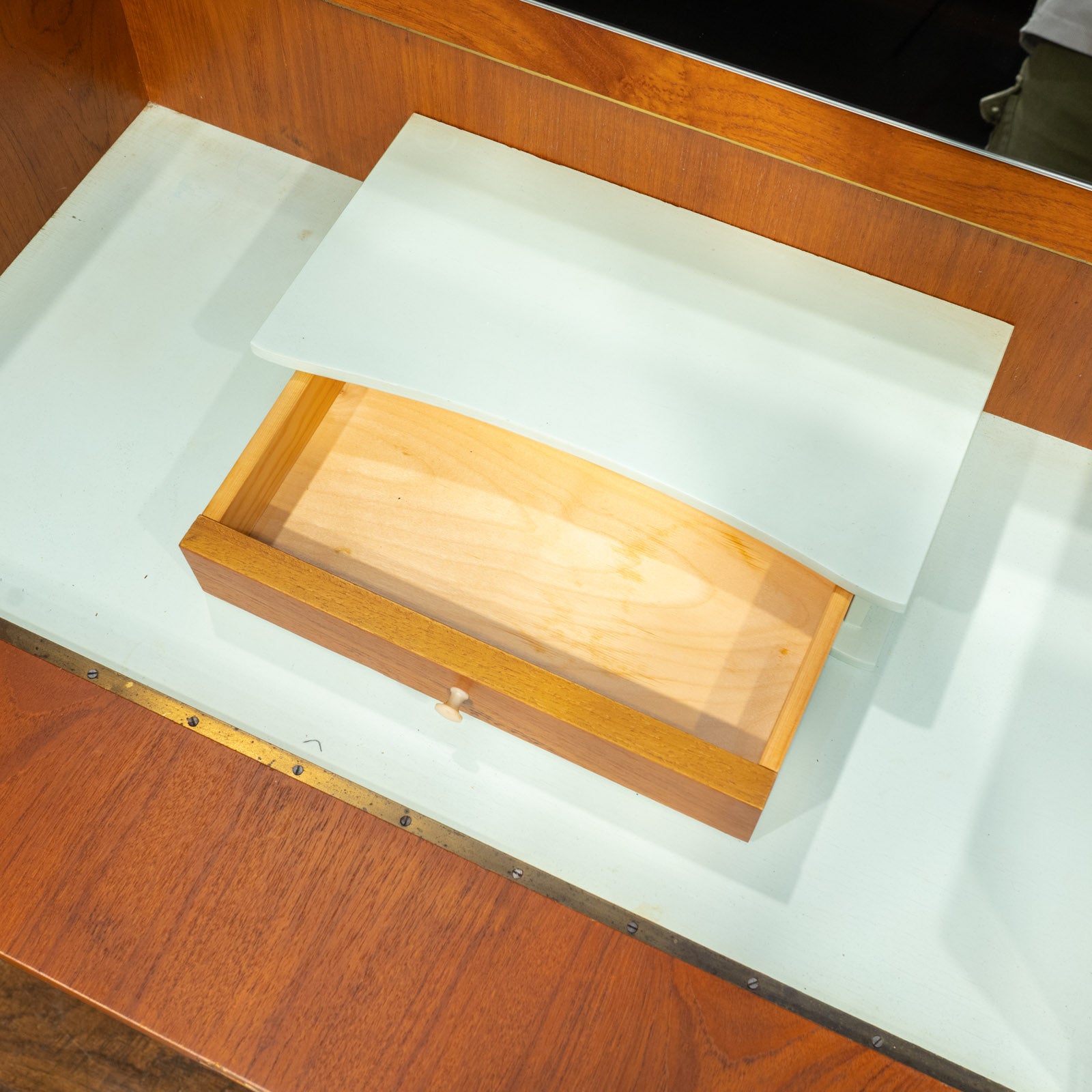 材質 | 表面材:天然木化粧合板(チーク)・ガラス 表面加工:ラッカー塗装 |
