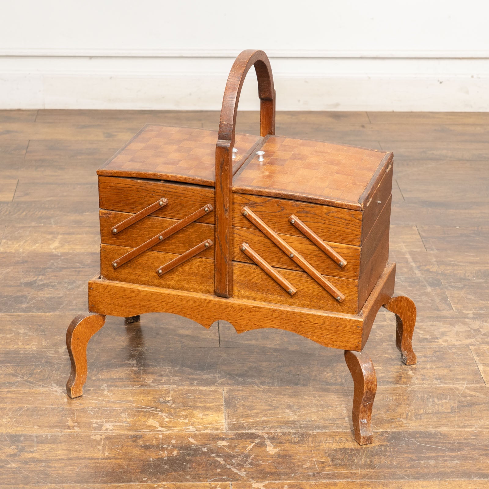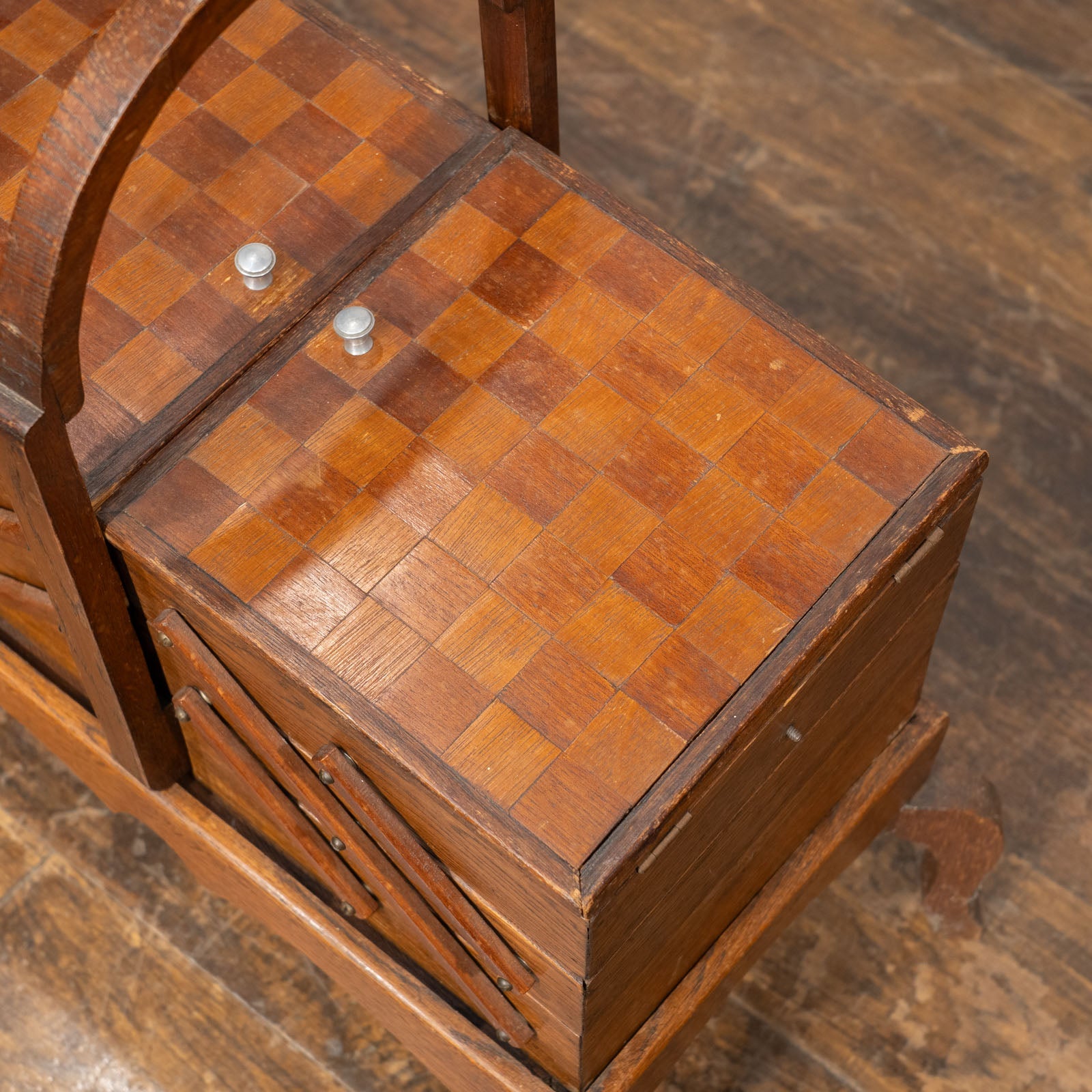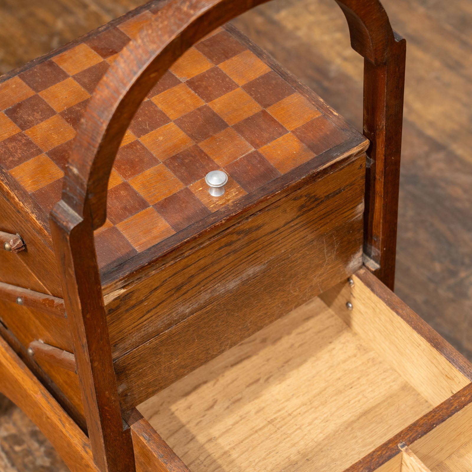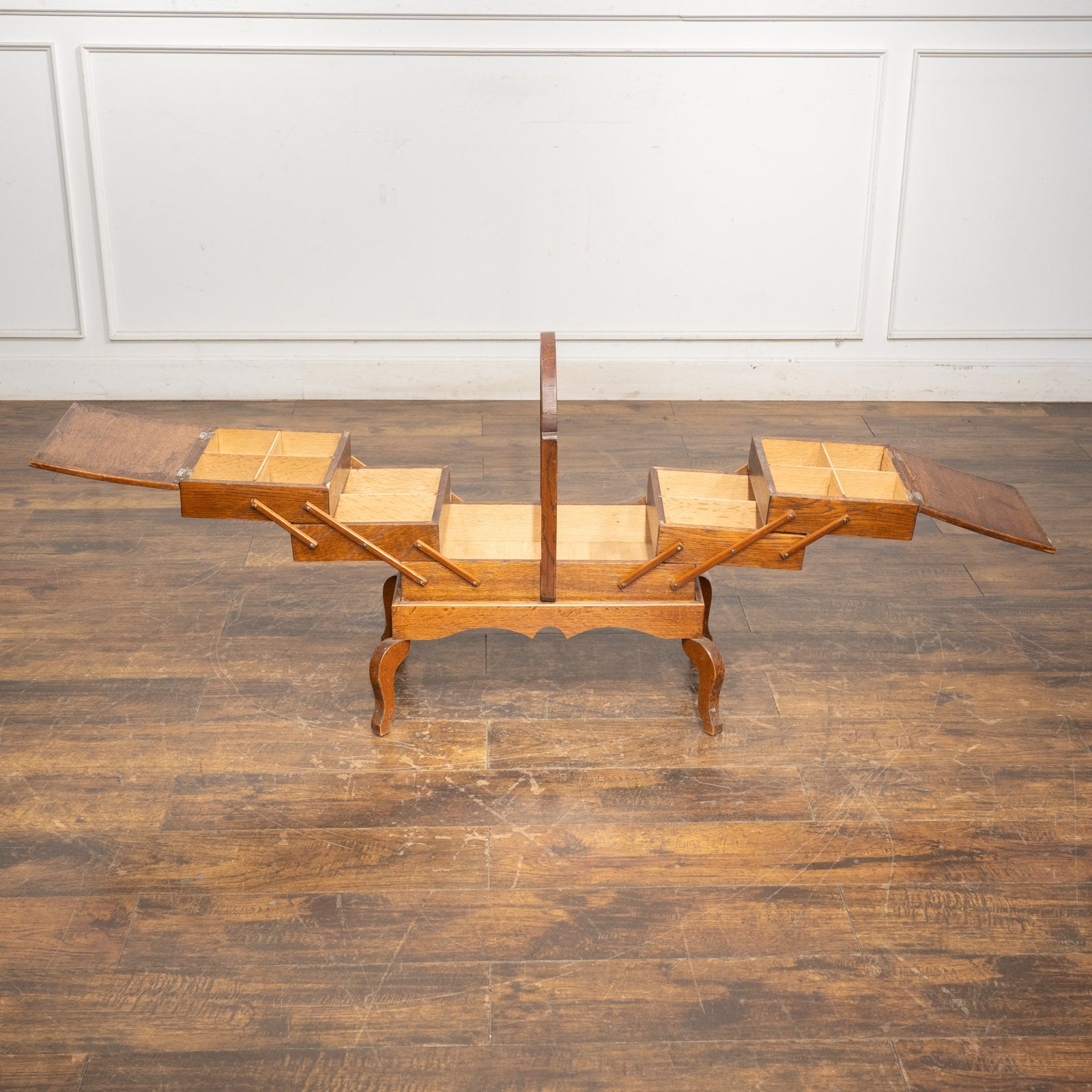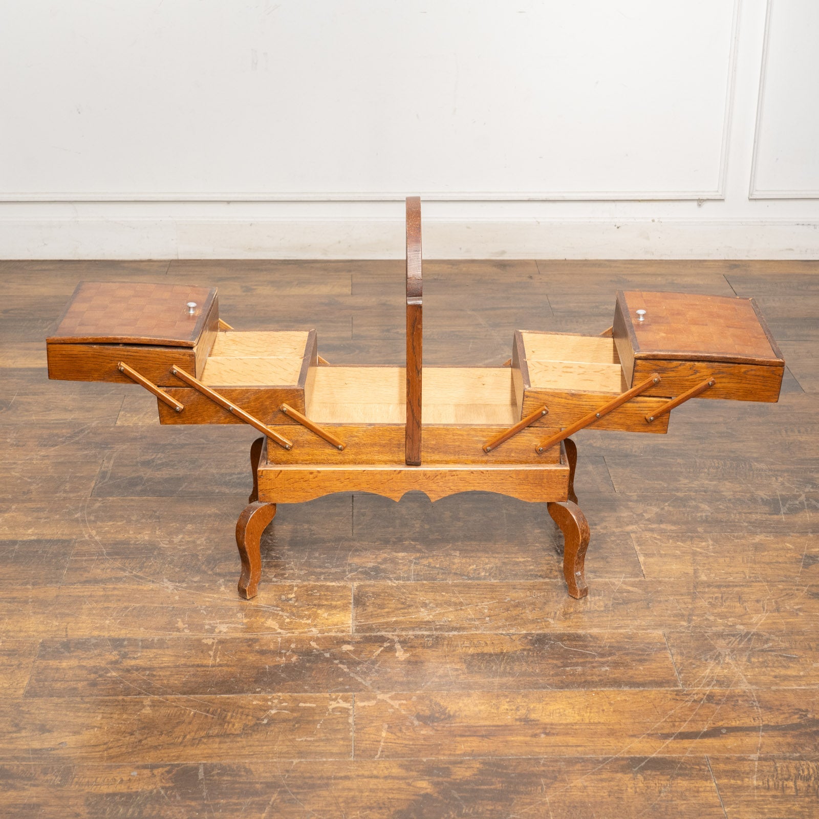 こちらはベルギーから買付けた、美しいウォールナットやオーク材が使われたソーイングボックスです。
