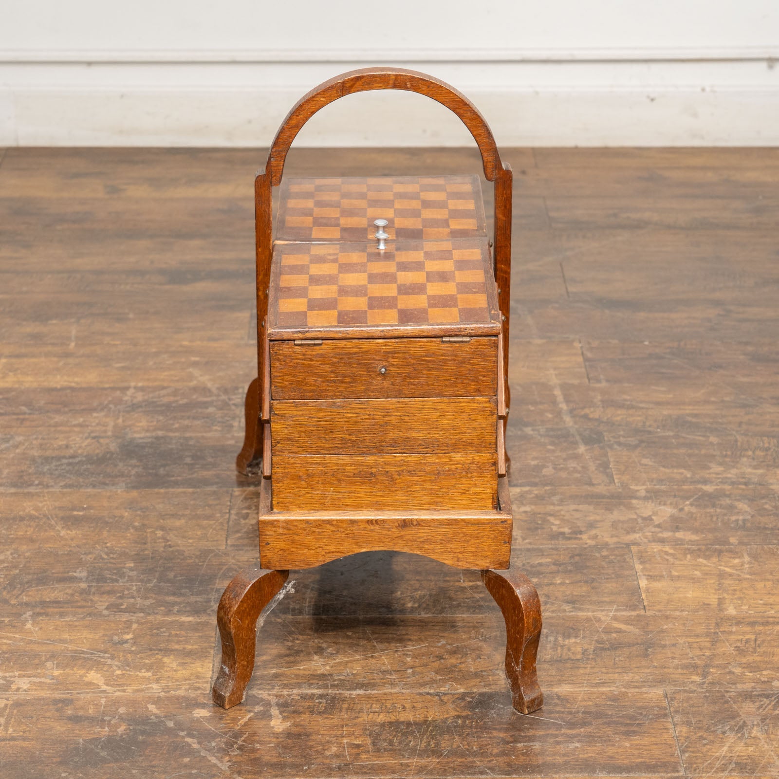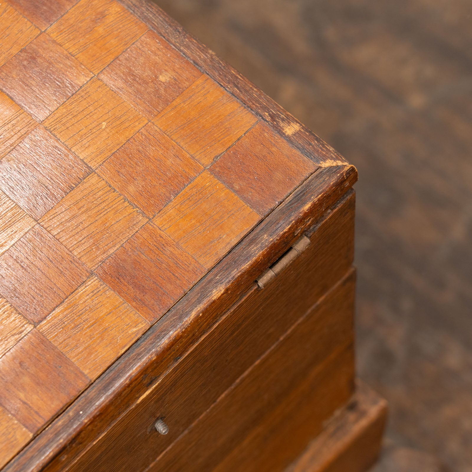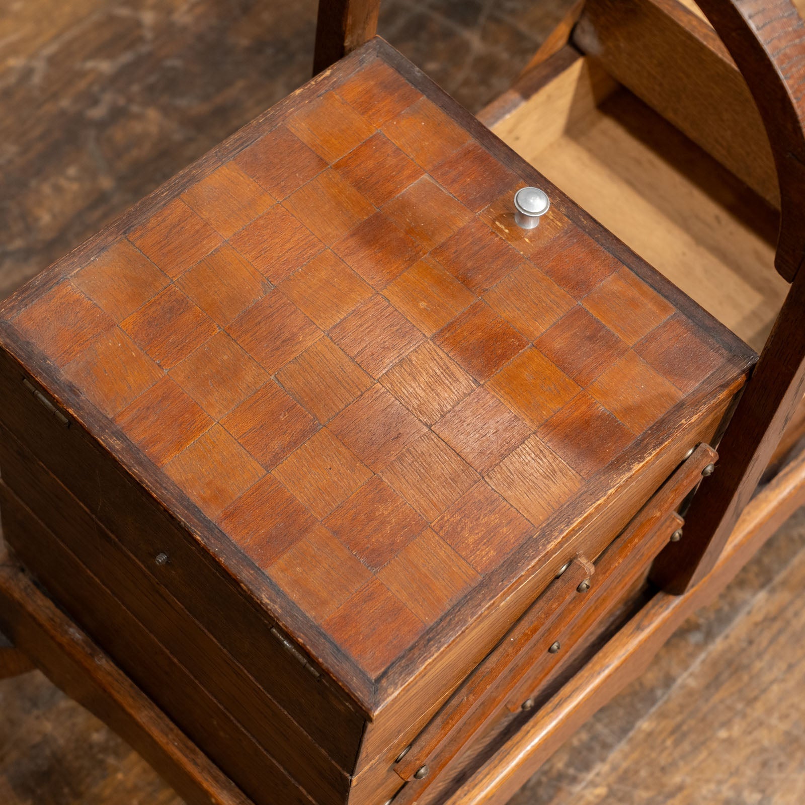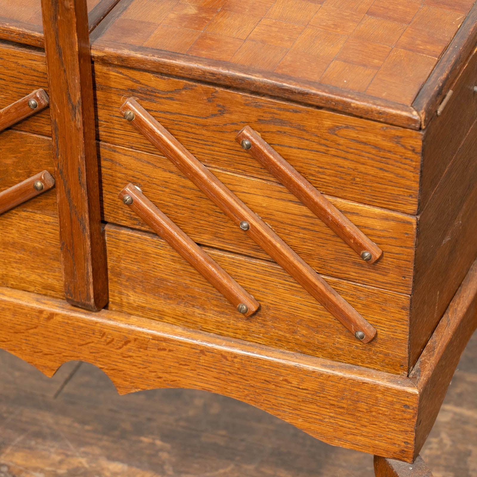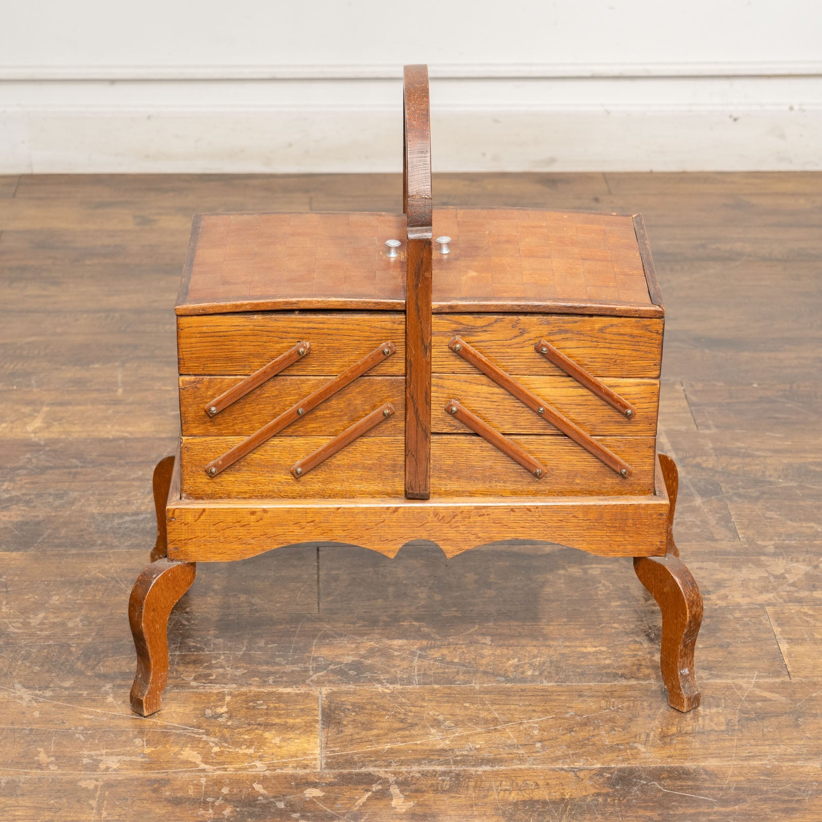 こちらはベルギーから買付けた、美しいウォールナットやオーク材が使われたソーイングボックスです。