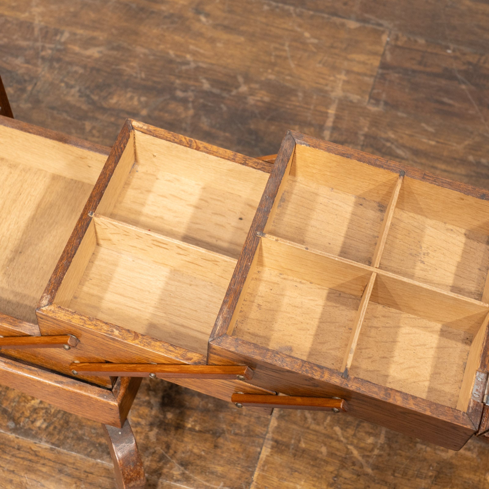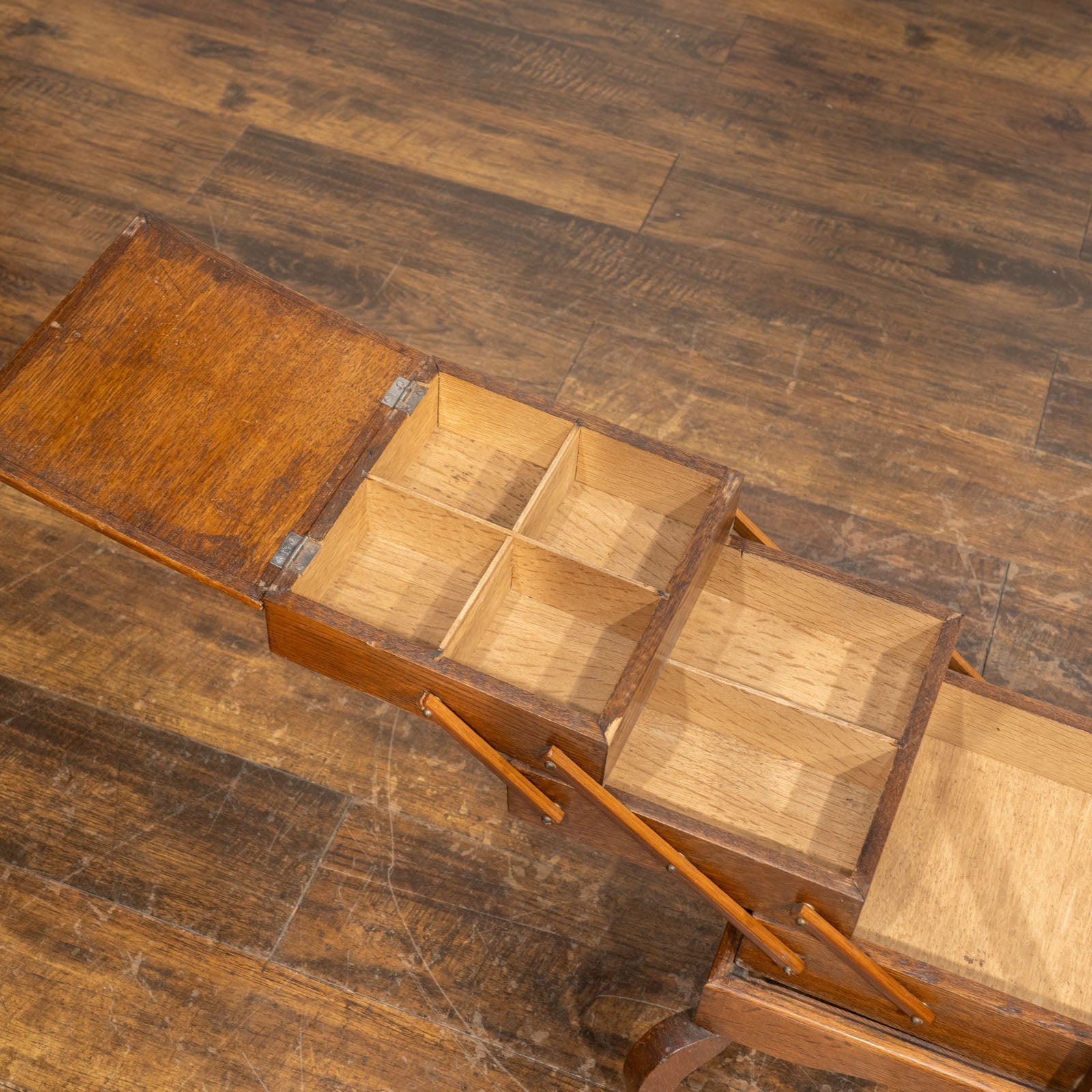 ボックスを開くと横に大きく広がり、どの段も取り出しやすい使い勝手の良いデザインで、優雅なカブリオールレッグが支える高さもあるタイプです。