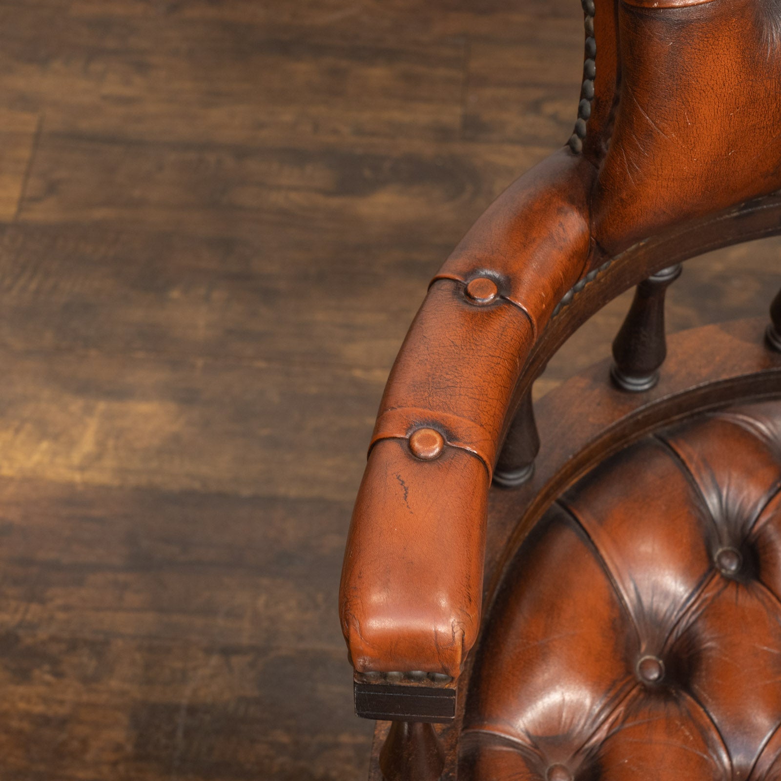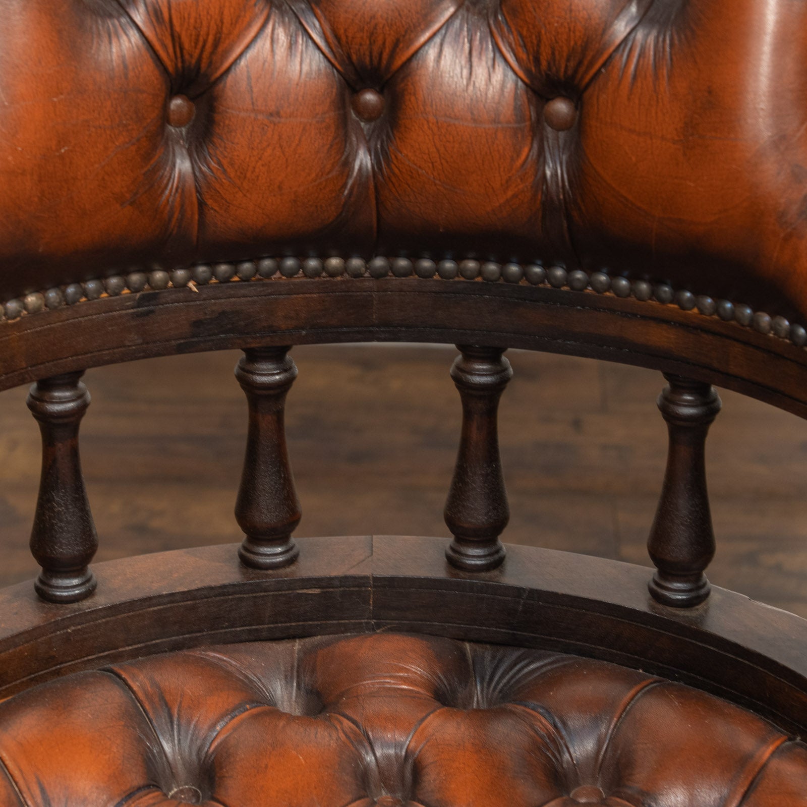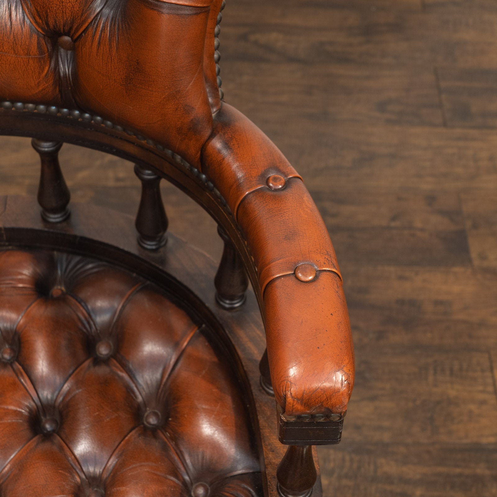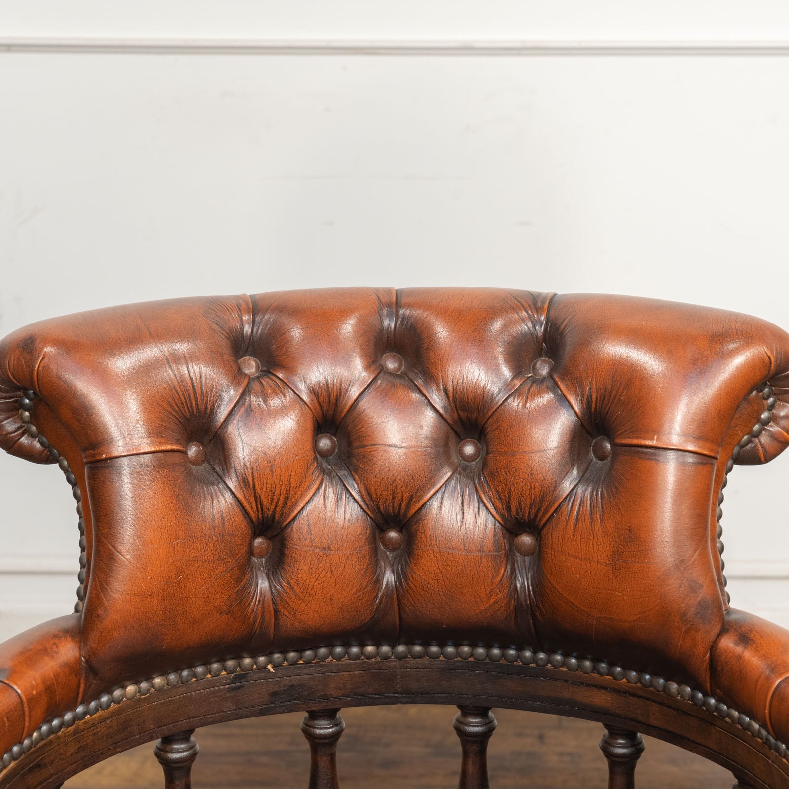経年を感じる艶やかな革をボタン留めしたチェスターフィールドスタイルで、体を包み込んでくれるアームや広めの座面によって長時間座っても疲れません。