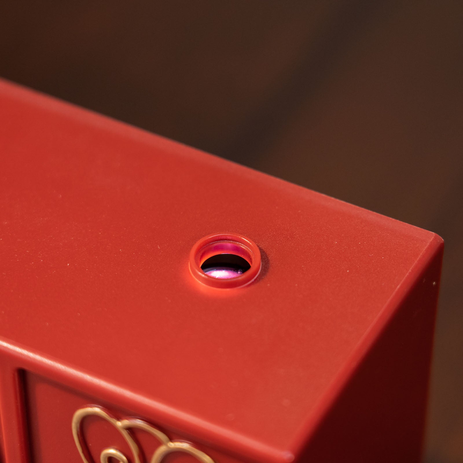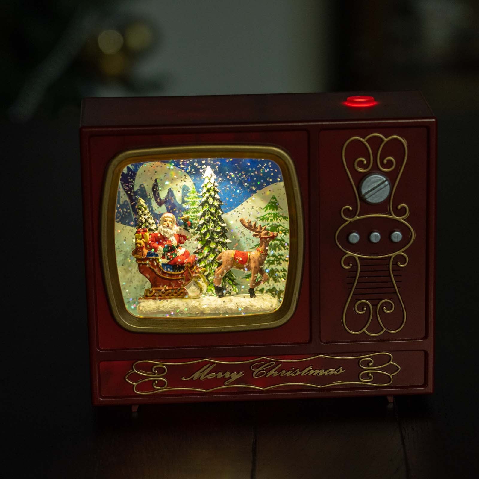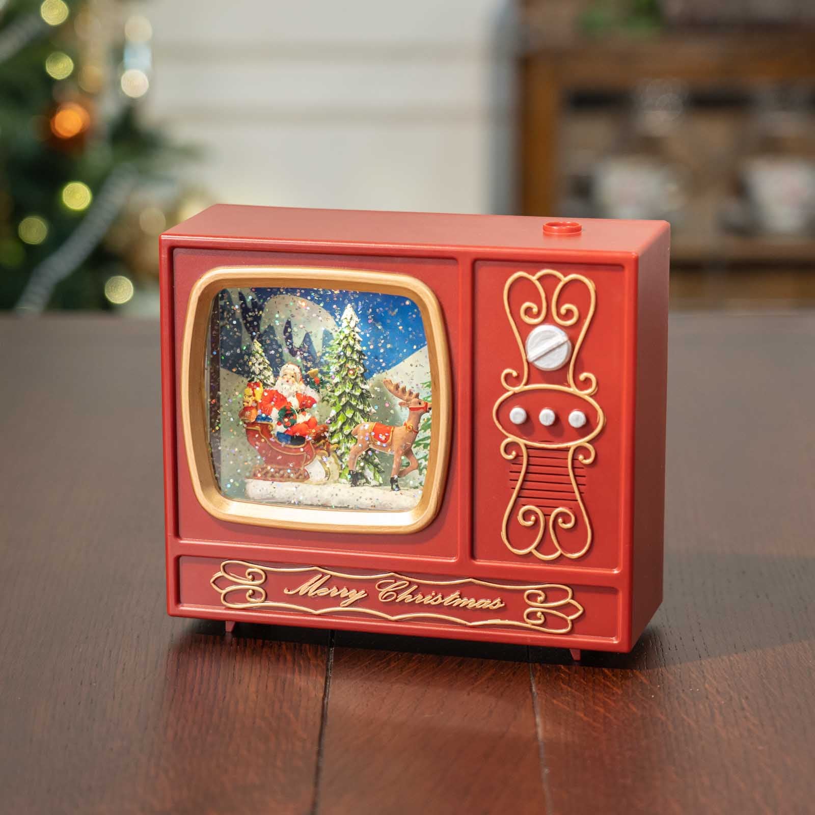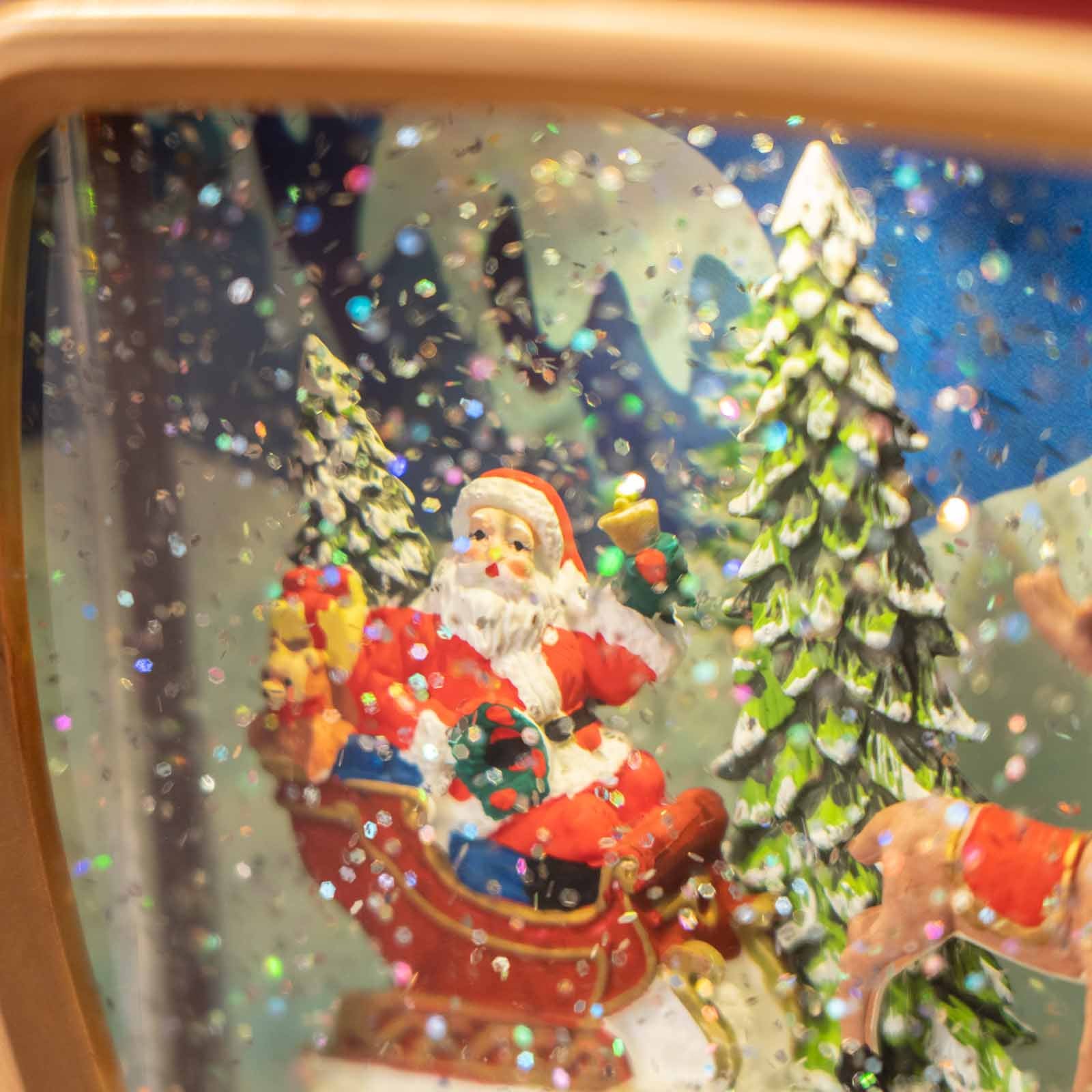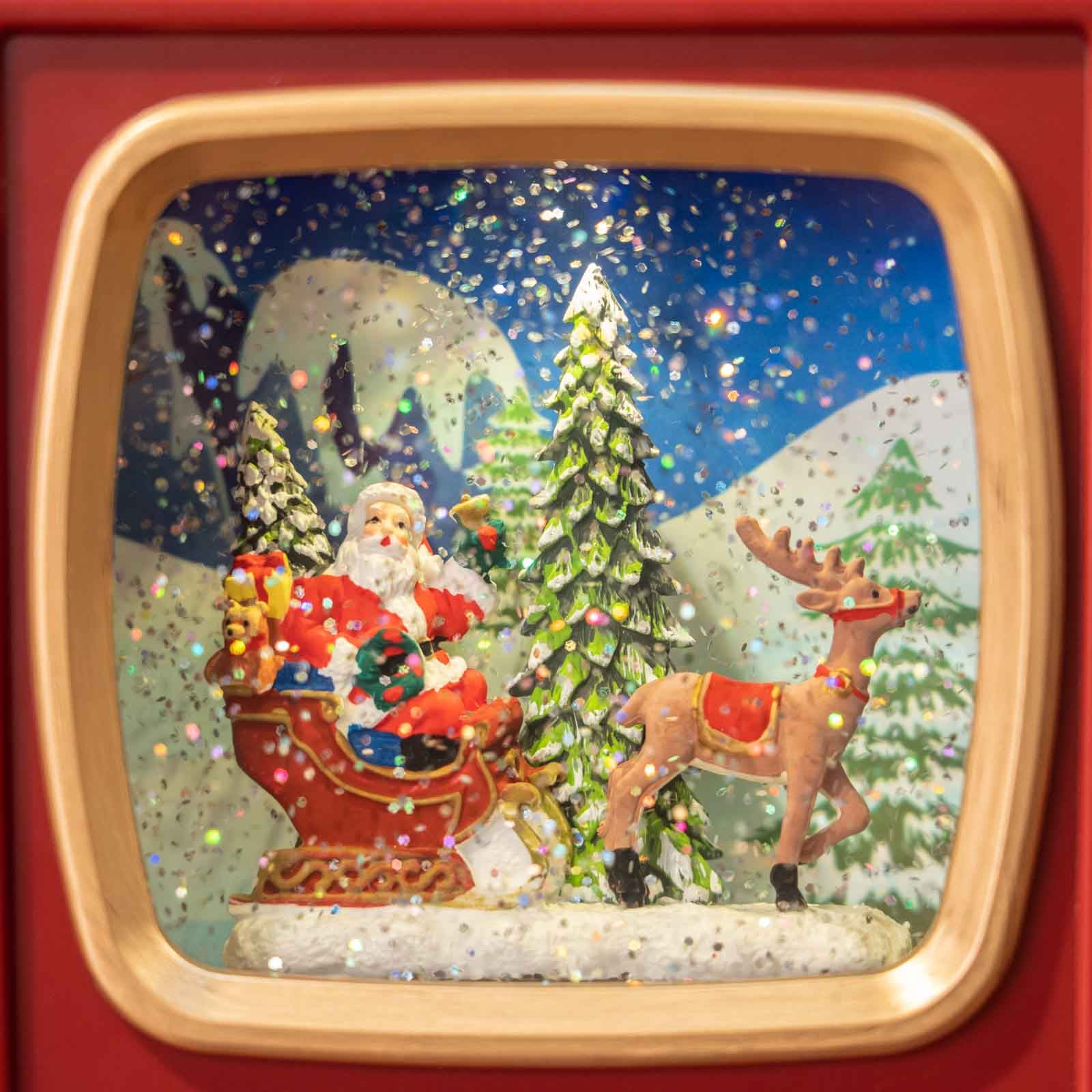 スイッチを入れると、テレビに見立てたボックスの中をほんのりと照らすLEDライトの明かりが灯り、それに合わせてキラキラと光り輝くラメが雪のように舞い上がります。ソリに乗ったサンタクロースがトナカイに引かれ、テレビの中で楽しそうにしています。クリスマスミュージックがBGMとして流れる機能も付いており、壁や天井に”Merry Christmas”の文字が浮かび上がるプロジェクターでも楽しめます。クリスマスはもちろん、クリスマスまでの毎日を素敵に演出してくれそうです。